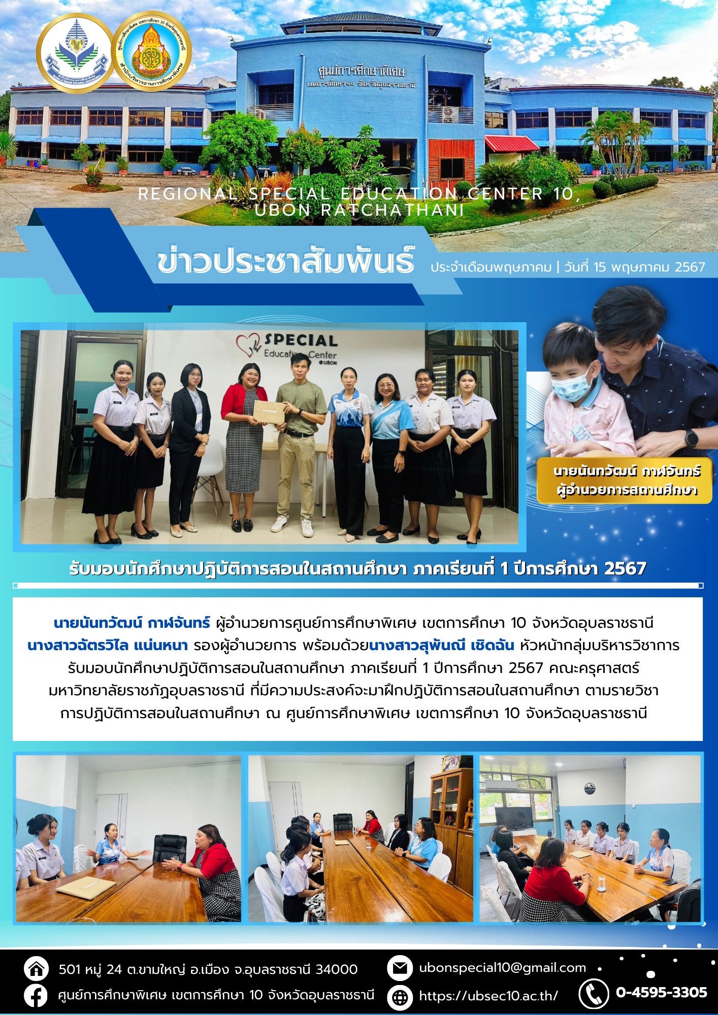 รับมอบนักศึกษาปฏิบัติการสอนในสถานศึกษา ภาคเรียนที่ 1 ปีการศึกษา 2567 คณะครุศาสตร์ มหาวิทยาลัยราชภัฏอุบลราชธานีBy ชนินทร์ ศรีส่อง / 15 พฤษภาคม 2024