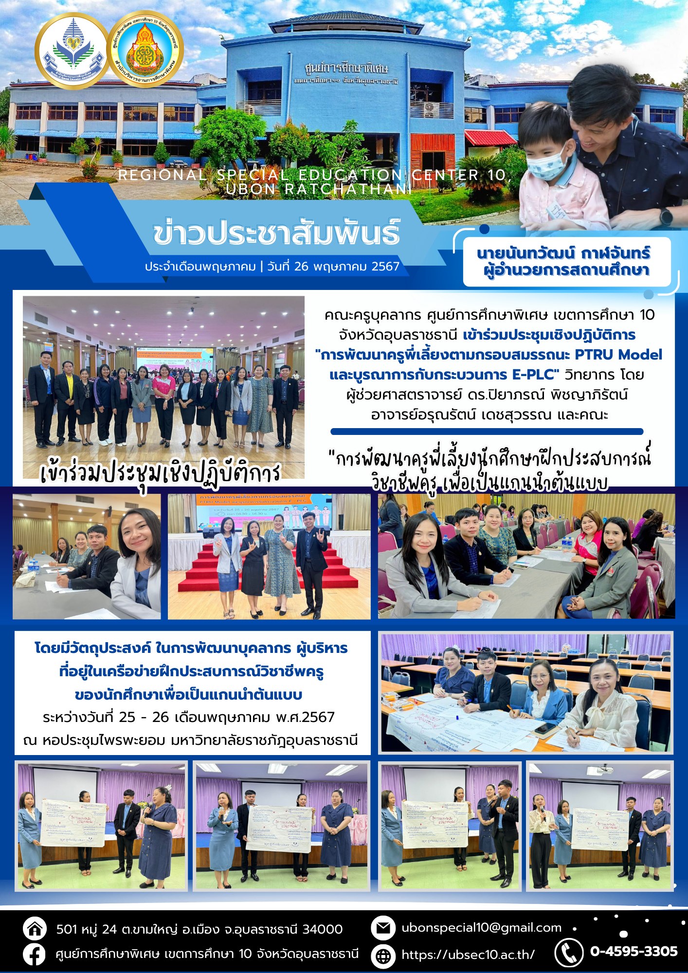 ร่วมประชุมเชิงปฏิบัติการ “การพัฒนาครูพี่เลี้ยงตามกรอบสมรรถนะ PTRU Model และบูรณาการกับกระบวนการ E-PLC”By ชนินทร์ ศรีส่อง / 26 พฤษภาคม 2024