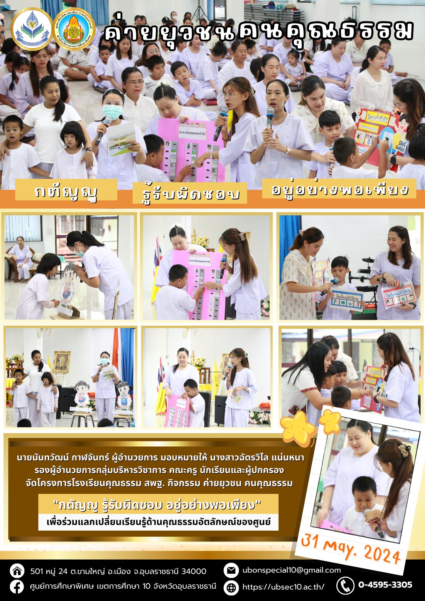 ค่ายยุวชน คนคุณธรรม “กตัญญู รู้รับผิดชอบ อยู่อย่างพอเพียง”