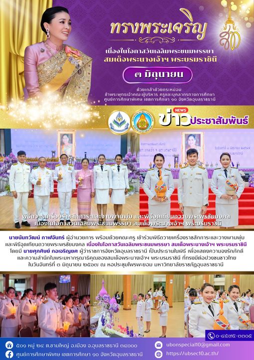 ร่วมพิธีถวายเครื่องราชสักการะและวางพานพุ่ม และพิธีจุดเทียนถวายพระพรชัยมงคล เนื่องในโอกาสวันเฉลิมพระชนมพรรษา สมเด็จพระนางเจ้าฯ พระบรมราชินีBy ชนินทร์ ศรีส่อง / 3 มิถุนายน 2024