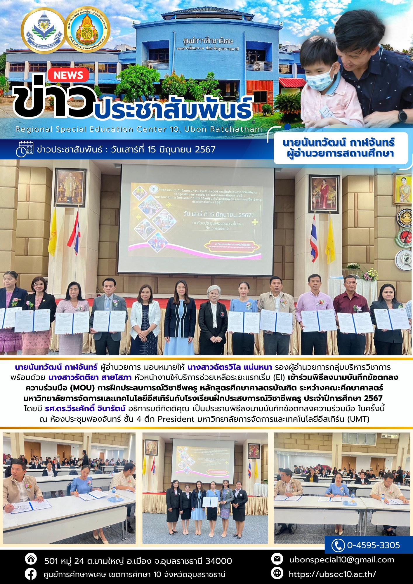 เข้าร่วมพิธีลงนามบันทึกข้อตกลงความร่วมมือ (MOU) การฝึกประสบการณ์วิชาชีพครู หลักสูตรศึกษาศาสตรบัณฑิตBy ชนินทร์ ศรีส่อง / 15 มิถุนายน 2024