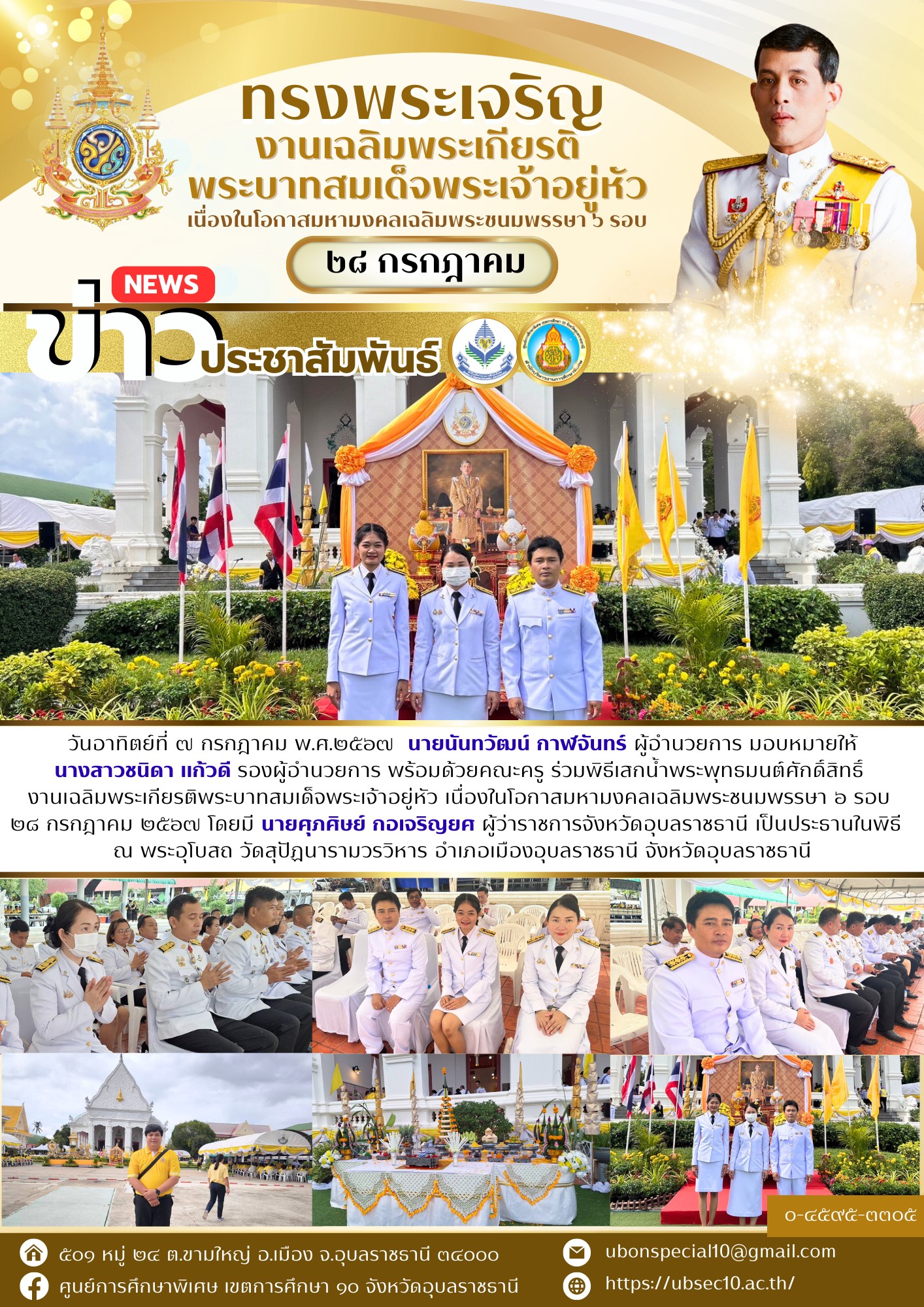 ร่วมพิธีเสกน้ำพระพุทธมนต์ศักดิ์สิทธิ์ งานเฉลิมพระเกียรติพระบาทสมเด็จพระเจ้าอยู่หัวBy ชนินทร์ ศรีส่อง / 7 กรกฎาคม 2024