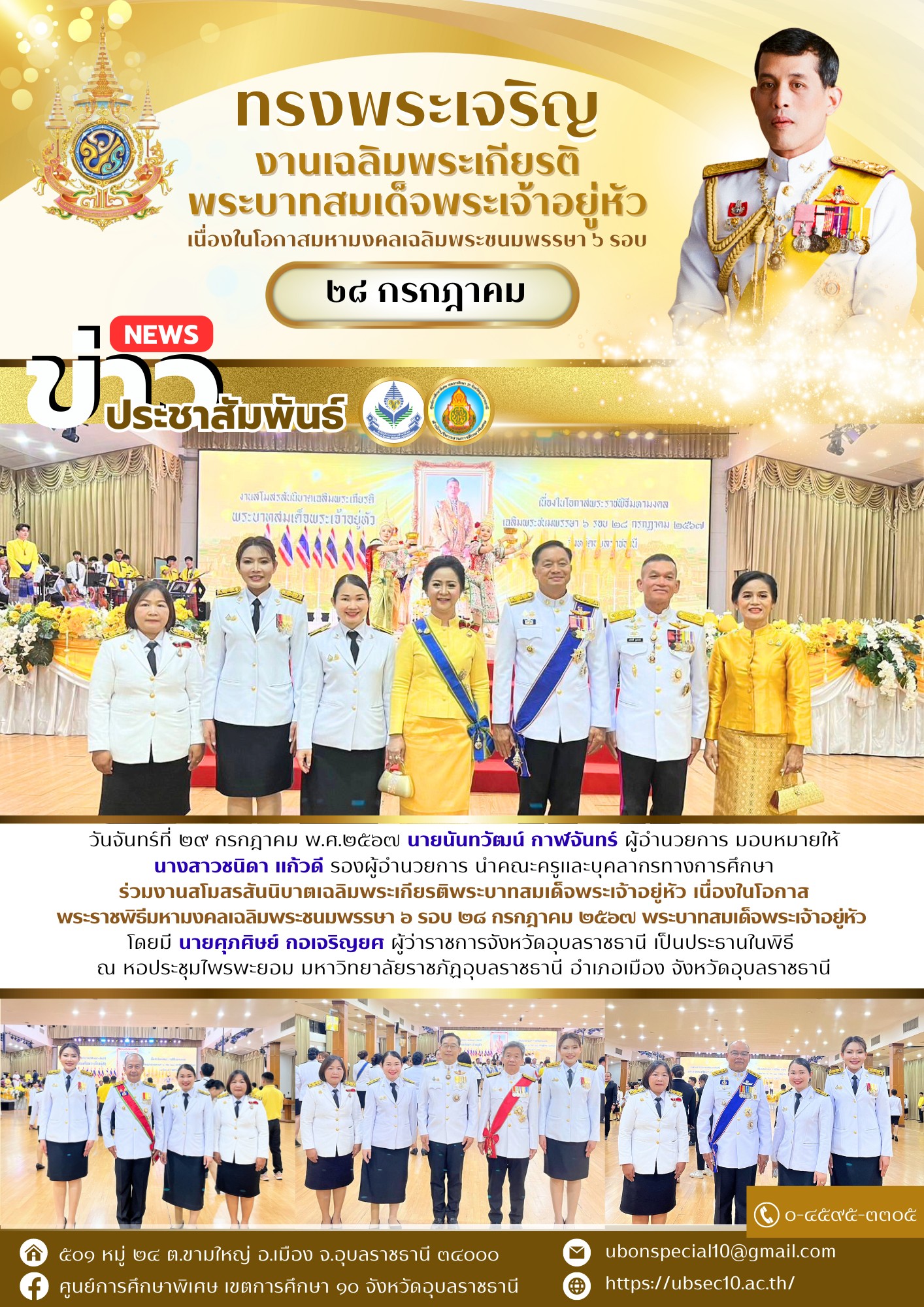 ร่วมงานสโมสรสันนิบาตเฉลิมพระเกียรติพระบาทสมเด็จพระเจ้าอยู่หัว เนื่องในโอกาสพระราชพิธีมหามงคลเฉลิมพระชนมBy ชนินทร์ ศรีส่อง / 29 กรกฎาคม 2024