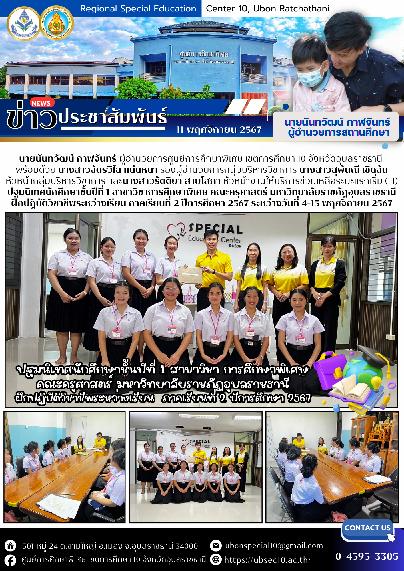 ปฐมนิเทศนักศึกษาชั้นปีที่ 1 สาขาวิชาการศึกษาพิเศษ คณะครุศาสตร์ มหาวิทยาลัยราชภัฏอุบลราชธานี ฝึกปฏิบัติวิชาชีพระหว่างเรียนBy ชนินทร์ ศรีส่อง / 11 พฤศจิกายน 2024