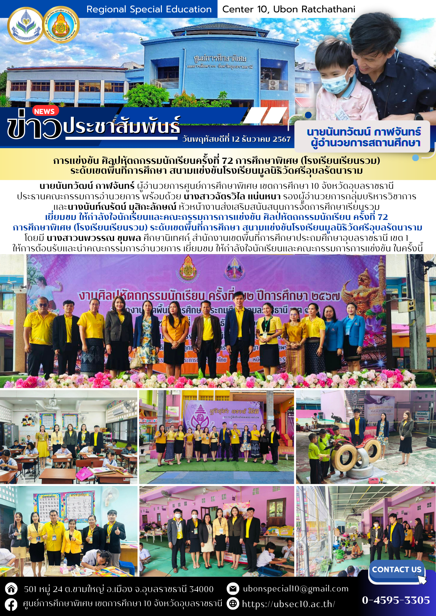 เยี่ยมชม ให้กำลังใจนักเรียนและคณะกรรมการการแข่งขัน ศิลปหัตถกรรมนักเรียน ครั้งที่ 72 การศึกษาพิเศษ (โรงเรียนเรียนรวม) ระดับเขตพื้นที่การศึกษาBy ชนินทร์ ศรีส่อง / 12 ธันวาคม 2024