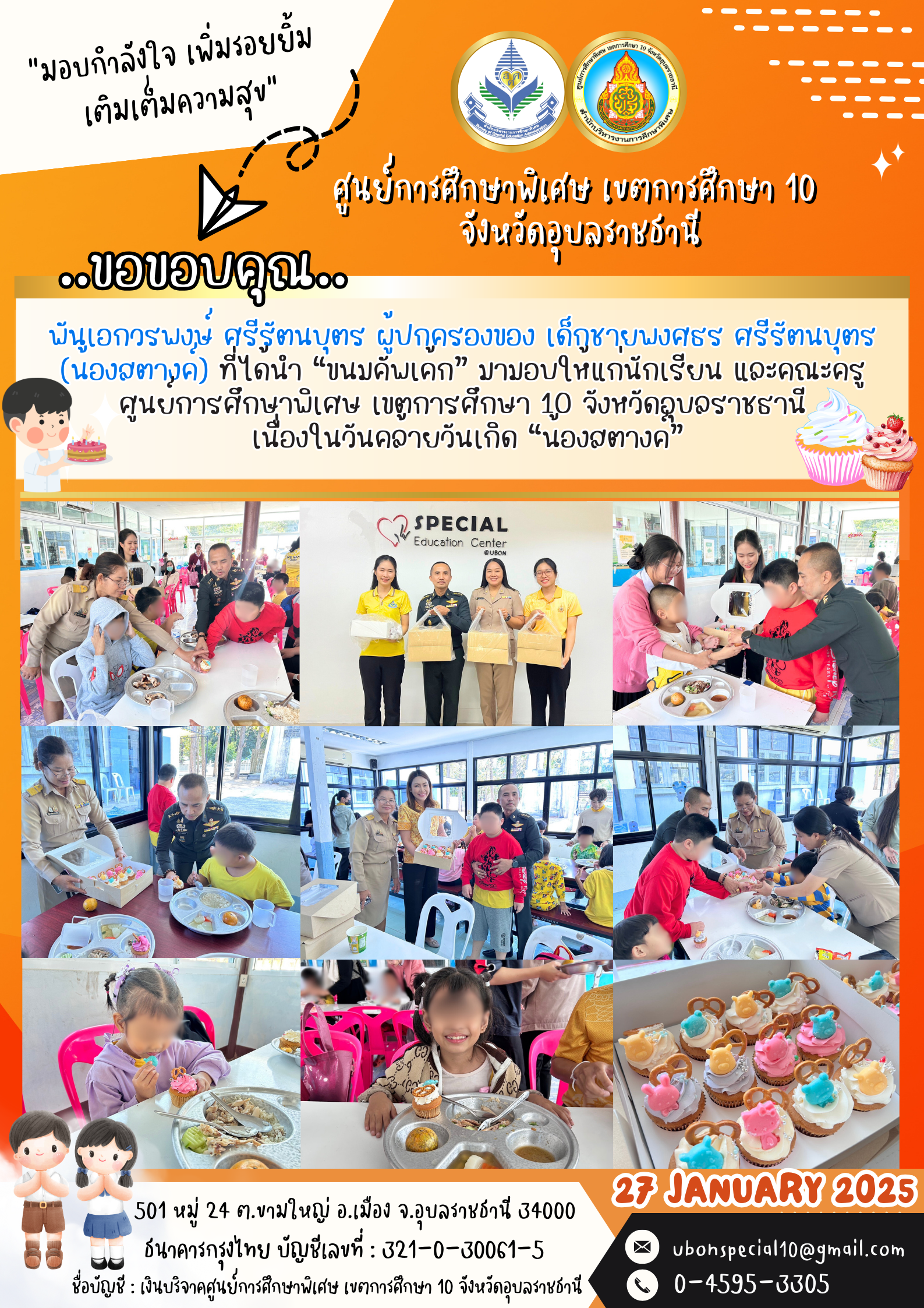 ขอขอบคุณ พันเอกวรพงษ์ ศรีรัตนบุตร ให้การสนับสนุนน้องคนพิเศษ