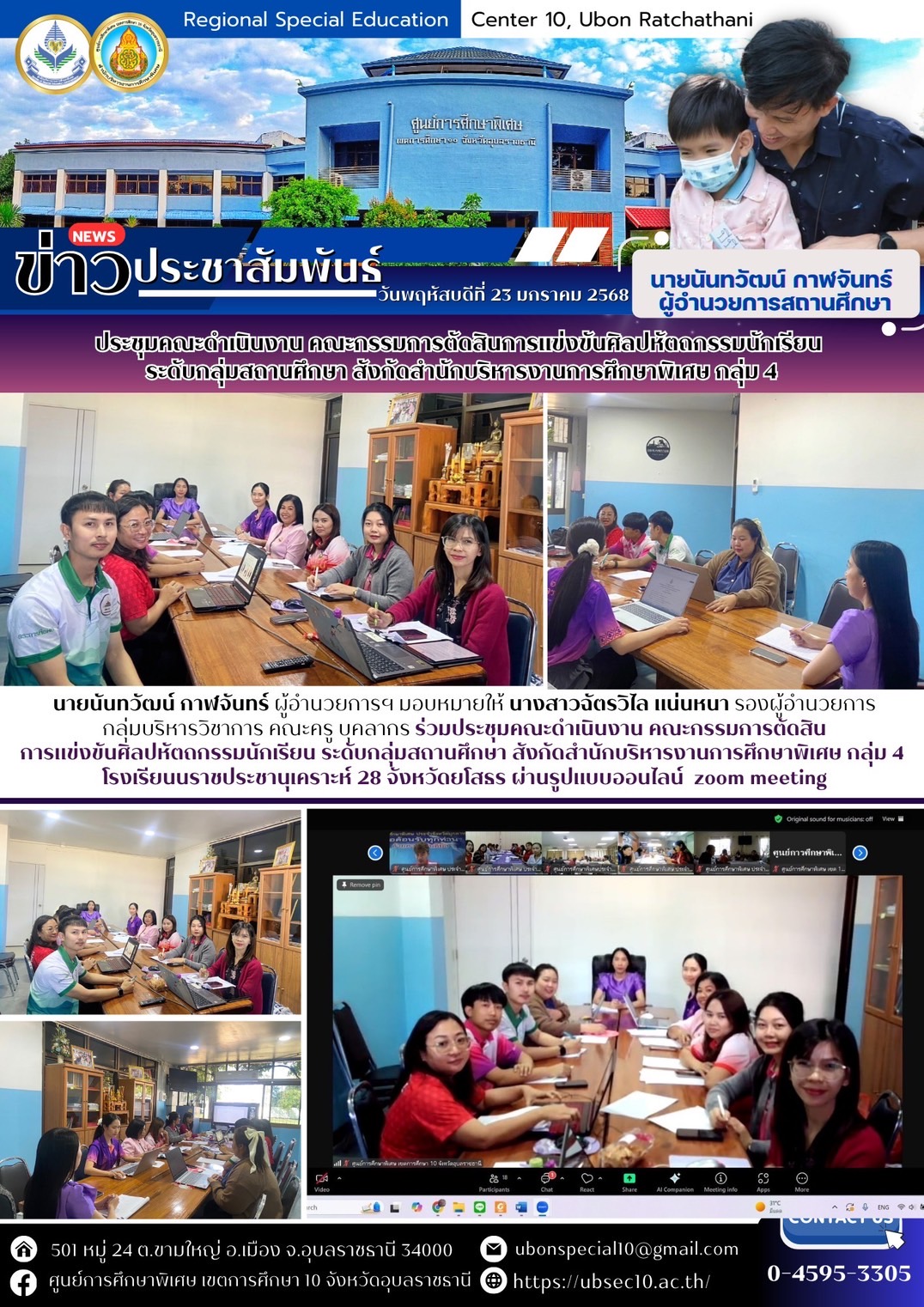 ประชุมคณะดำเนินงาน คณะกรรมการตัดสินการแข่งขันงานศิลปหัตถกรรมนักเรียน ระดับกลุ่มสถานศึกษา สังกัดสำนักบริหารงานการศึกษาพิเศษ กลุ่ม 4By ชนินทร์ ศรีส่อง / 23 มกราคม 2025