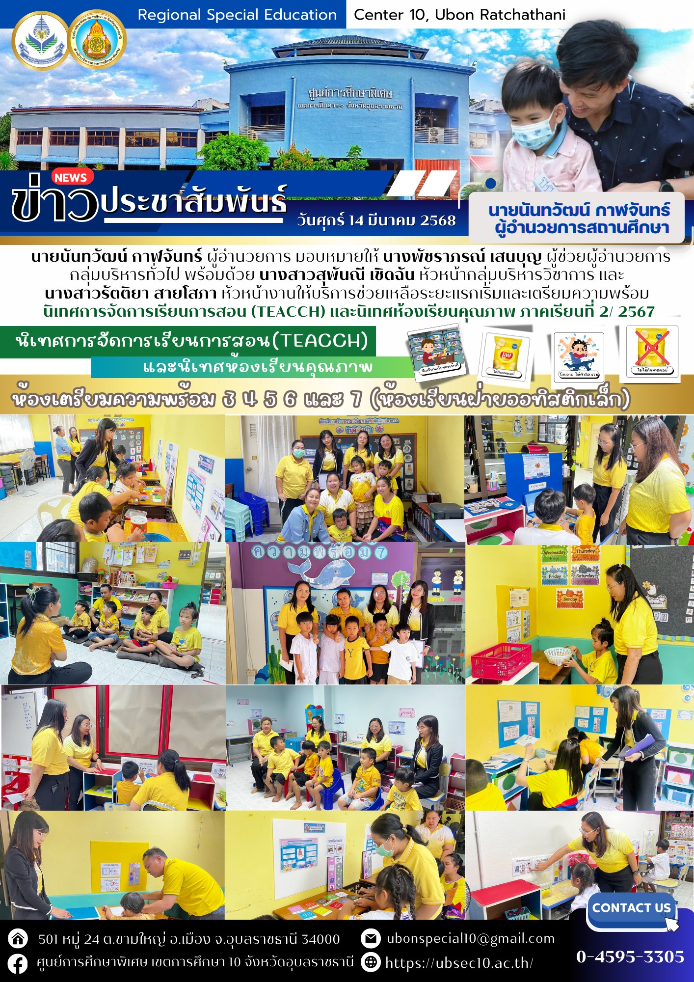นิเทศการจัดการเรียนการสอน (TEACCH) และนิเทศห้องเรียนคุณภาพ ห้องเตรียมความพร้อม (ห้องเรียนฝ่ายออทิสติกเล็ก) ประจำภาคเรียนที่ 2 ปีการศึกษา 2567By ชนินทร์ ศรีส่อง / 14 มีนาคม 2025