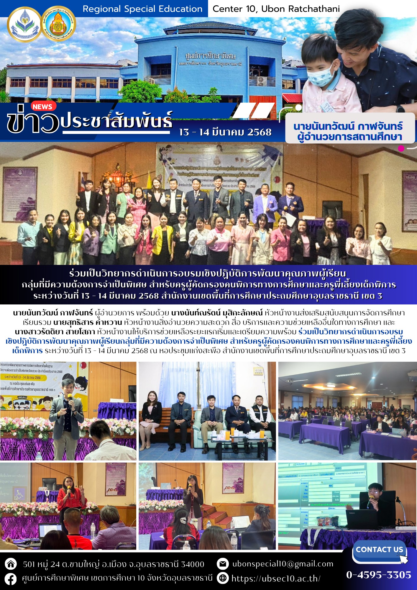 ร่วมเป็นวิทยากรดำเนินการอบรมเชิงปฏิบัติการพัฒนาคุณภาพผู้เรียนกลุ่มที่มีความต้องการจำเป็นพิเศษ สำหรับครูผู้คัดกรองคนพิการทางการศึกษาและครูพี่เลี้ยงเด็กพิการBy ชนินทร์ ศรีส่อง / 14 มีนาคม 2025