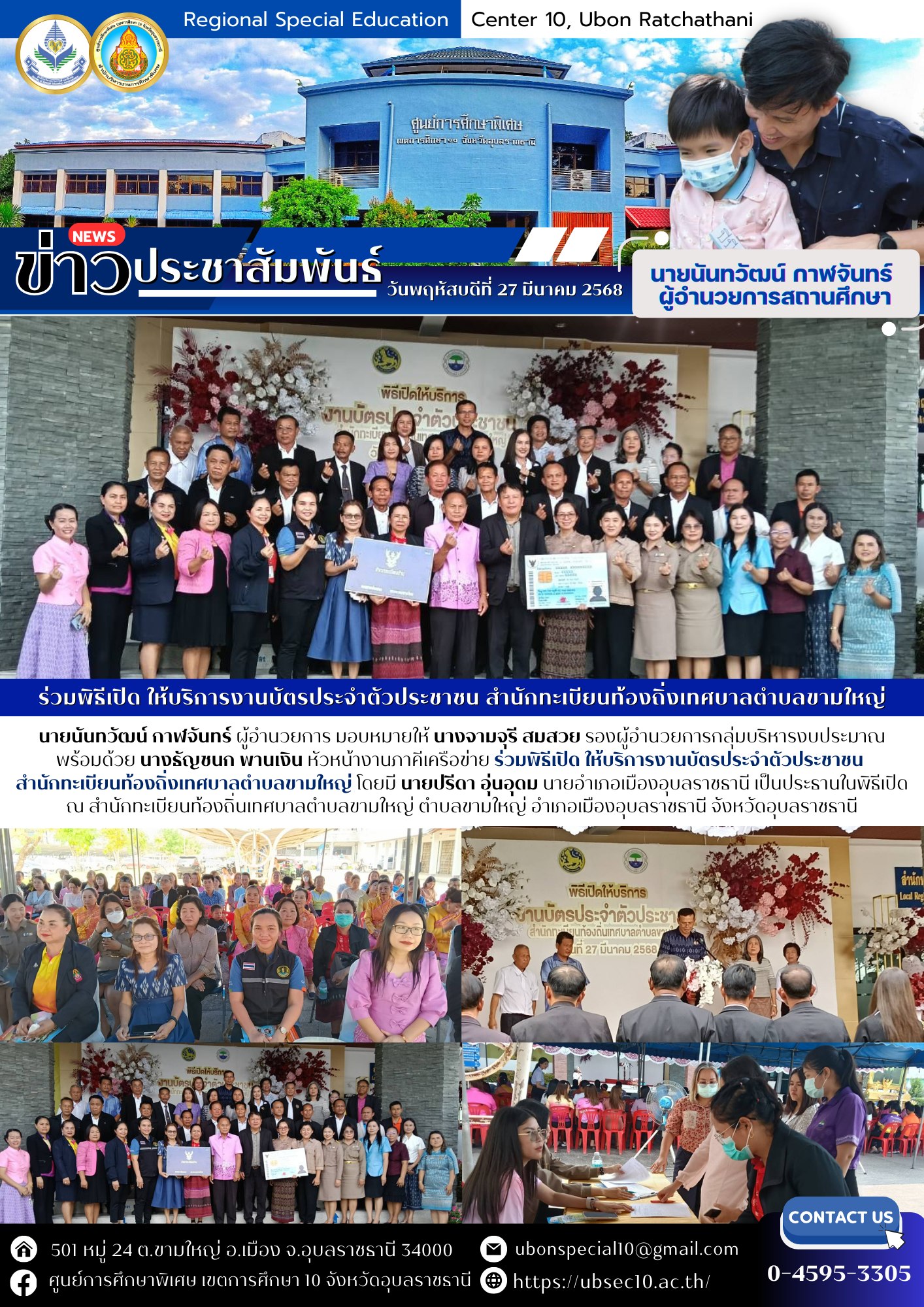 ร่วมพิธีเปิด ให้บริการงานบัตรประจำตัวประชาชน สำนักทะเบียนท้องถิ่งเทศบาลตำบลขามใหญ่By ชนินทร์ ศรีส่อง / 27 มีนาคม 2025
