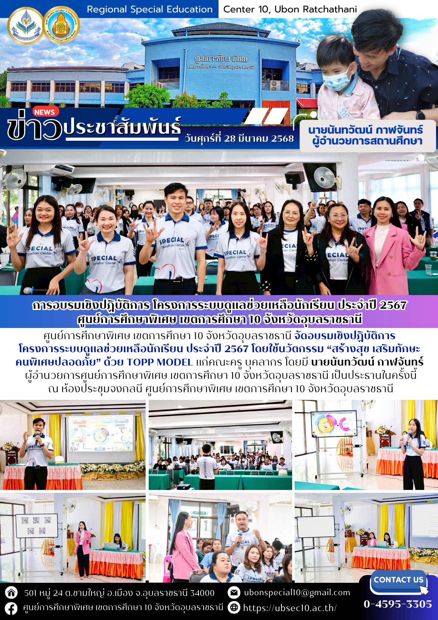 อบรมเชิงปฏิบัติการโครงการระบบดูแลช่วยเหลือนักเรียน ประจำปี 2567 โดยใช้นวัตกรรม “สร้างสุข เสริมทักษะ คนพิเศษปลอดภัย” ด้วย TOPP MODEL By ชนินทร์ ศรีส่อง / 28 มีนาคม 2025