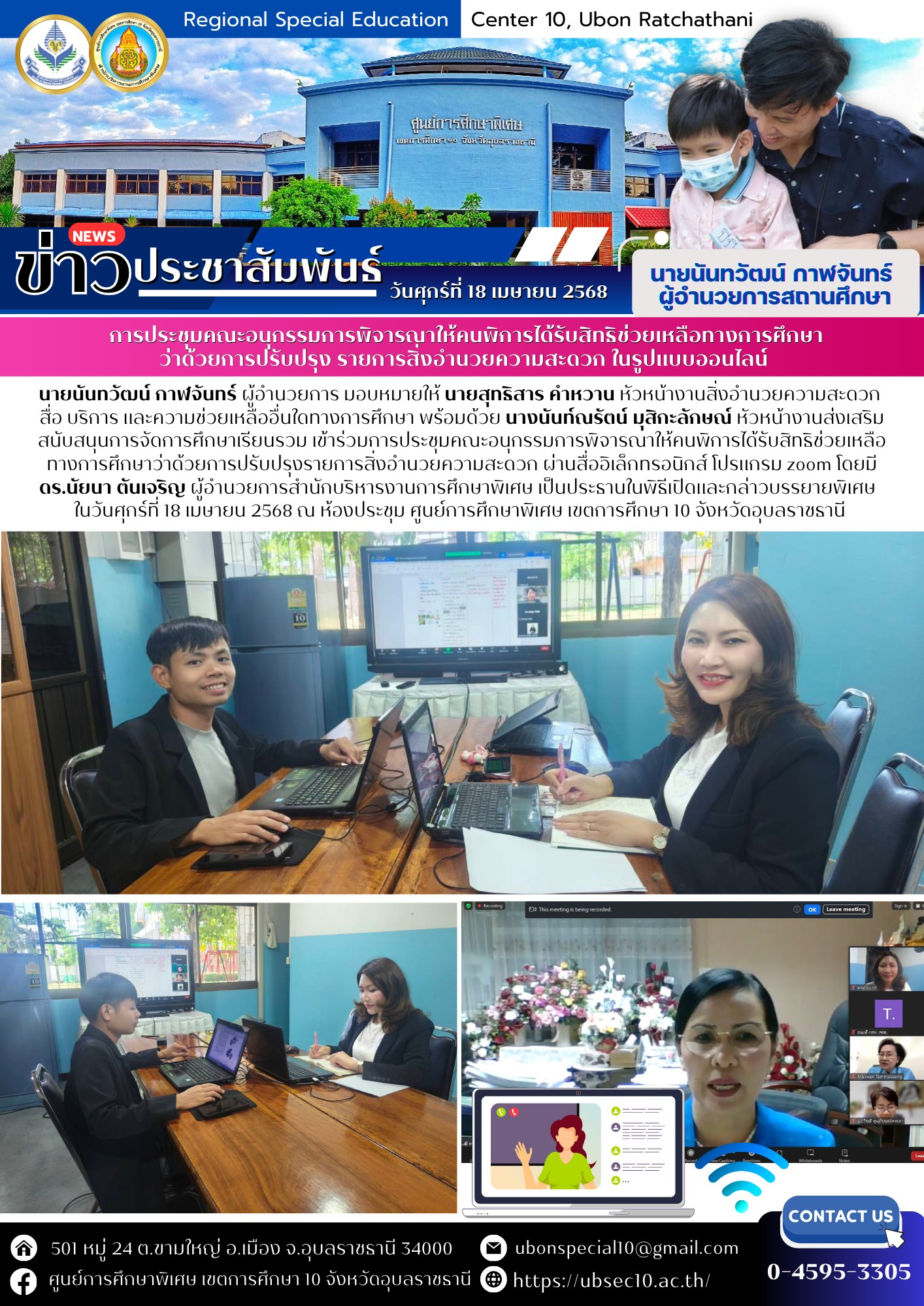 ร่วมการประชุมคณะอนุกรรมการพิจารณาให้คนพิการได้รับสิทธิช่วยเหลือทางการศึกษาว่าด้วยการปรับปรุงรายการสิ่งอำนวยความสะดวกผ่านสื่ออิเล็กทรอนิกส์By ชนินทร์ ศรีส่อง / 18 เมษายน 2025