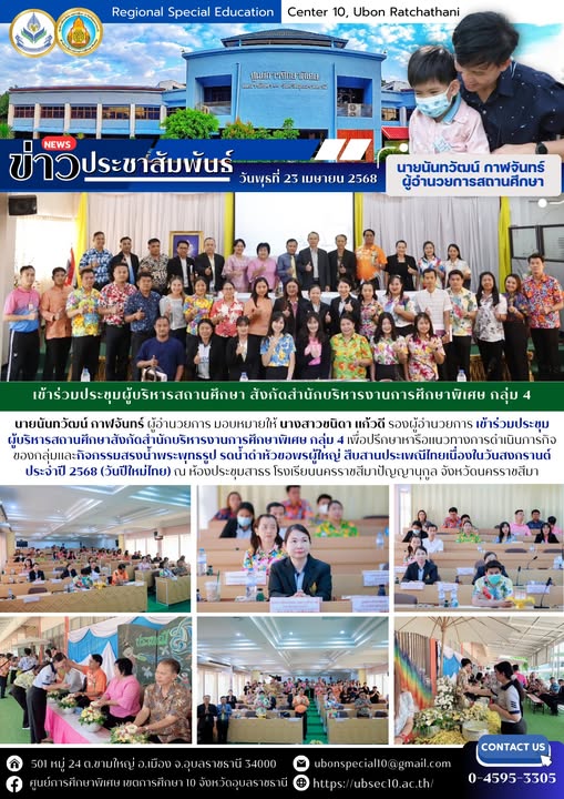 ร่วมประชุมผู้บริหารสถานศึกษาสังกัดสำนักบริหารงานการศึกษาพิเศษ กลุ่ม 4 By ชนินทร์ ศรีส่อง / 23 เมษายน 2025