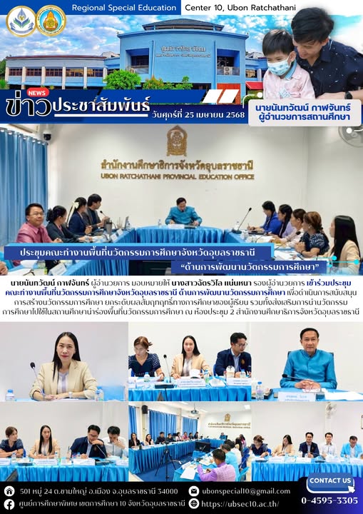 ร่วมประชุมคณะทำงานพื้นที่นวัตกรรมการศึกษาจังหวัดอุบลราชธานี ด้านการพัฒนานวัตกรรมการศึกษาBy ชนินทร์ ศรีส่อง / 25 เมษายน 2025