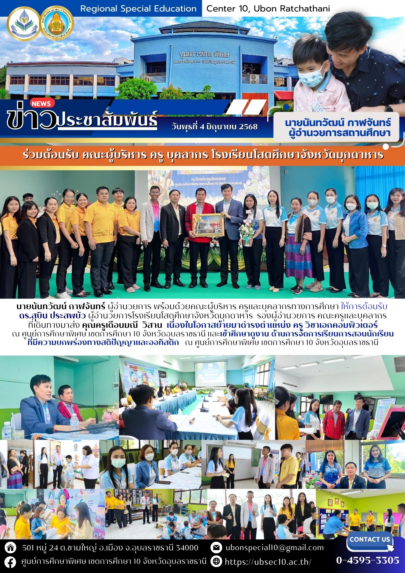 ให้การต้อนรับคณะโรงเรียนโสตศึกษาจังหวัดมุกดาหาร เข้าศึกษาดูงาน ด้านการจัดการเรียนการสอนนักเรียนที่มีความบกพร่องทางสติปัญญาและออทิสติกBy ชนินทร์ ศรีส่อง / 4 มิถุนายน 2025