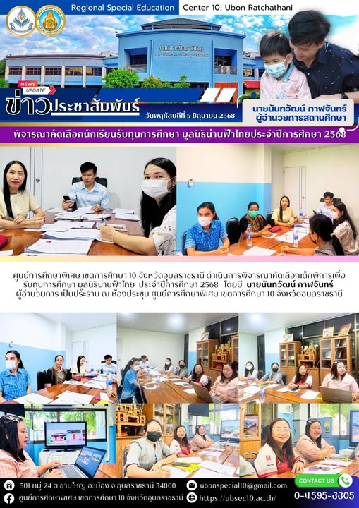 ดำเนินการพิจารณาคัดเลือกเด็กพิการเพื่อรับทุนการศึกษา มูลนิธิน่านฟ้าไทย ประจำปีการศึกษา 2568 By ชนินทร์ ศรีส่อง / 5 มิถุนายน 2025
