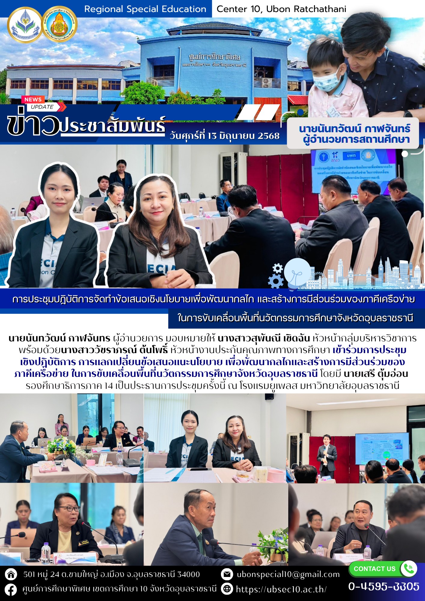 เข้าร่วมการประชุมเชิงปฏิบัติการ การแลกเปลี่ยนข้อเสนอแนะนโยบาย เพื่อพัฒนากลไกและสร้างการมีส่วนร่วมของภาคีเครือข่าย ในการขับเคลื่อนพื้นที่นวัตกรรมการศึกษาจังหวัดอุบลราชธานีBy ชนินทร์ ศรีส่อง / 13 มิถุนายน 2025