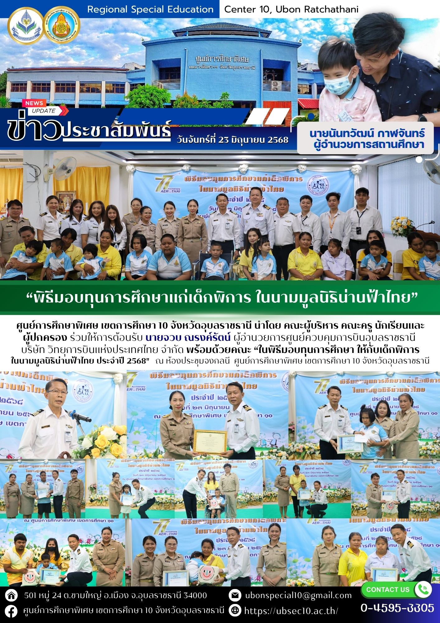 พิธีมอบทุนการศึกษา ให้กับเด็กพิการในนามมูลนิธิน่านฟ้าไทย ประจำปี 2568By ชนินทร์ ศรีส่อง / 23 มิถุนายน 2025