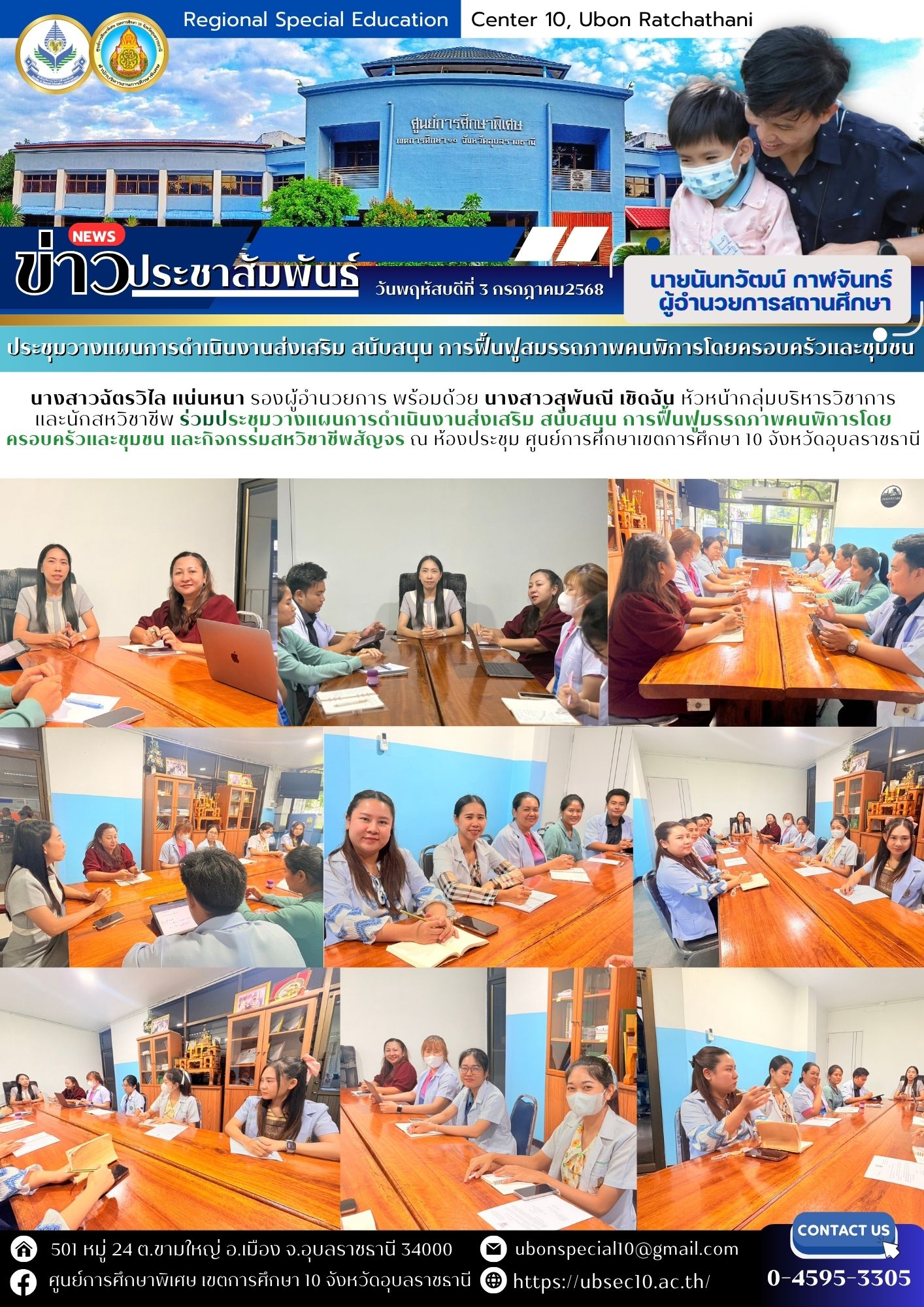 ร่วมประชุมวางแผนการดำเนินงานส่งเสริม สนับสนุน การฟื้นฟูมรรถภาพคนพิการโดยครอบครัวและชุมชน และกิจกรรมสหวิชาชีพสัญจรBy ชนินทร์ ศรีส่อง / 3 กรกฎาคม 2025