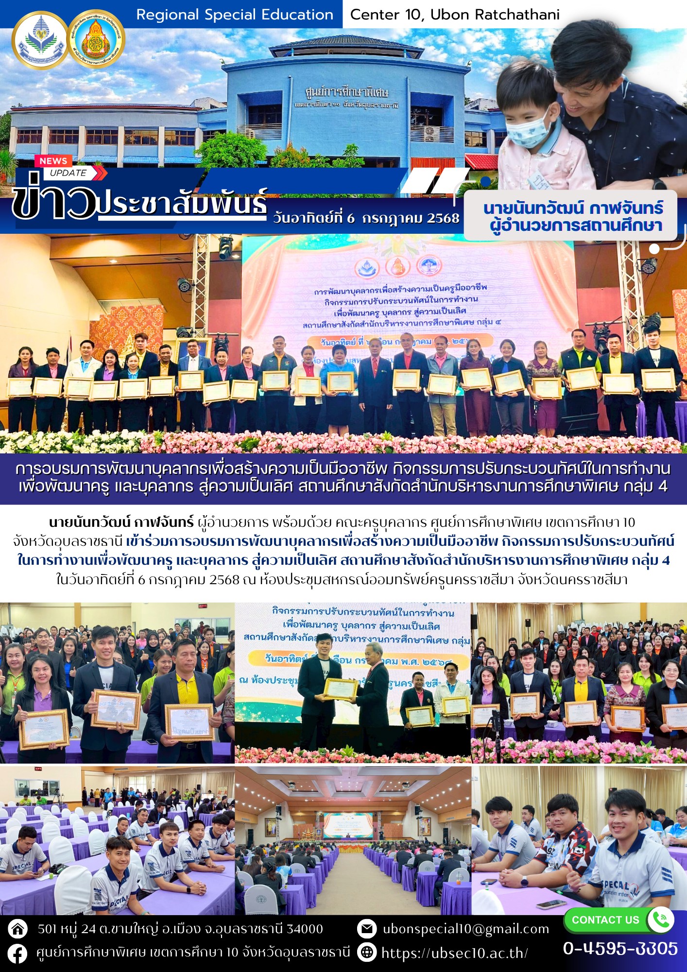 ร่วมการอบรมการพัฒนาบุคลากรเพื่อสร้างความเป็นมืออาชีพ กิจกรรมการปรับกระบวนทัศน์ ในการทำงานเพื่อพัฒนาครู และบุคลากร สู่ความเป็นเลิศ สถานศึกษาสังกัดสำนักบริหารงานการศึกษาพิเศษ กลุ่ม 4By ชนินทร์ ศรีส่อง / 6 กรกฎาคม 2025