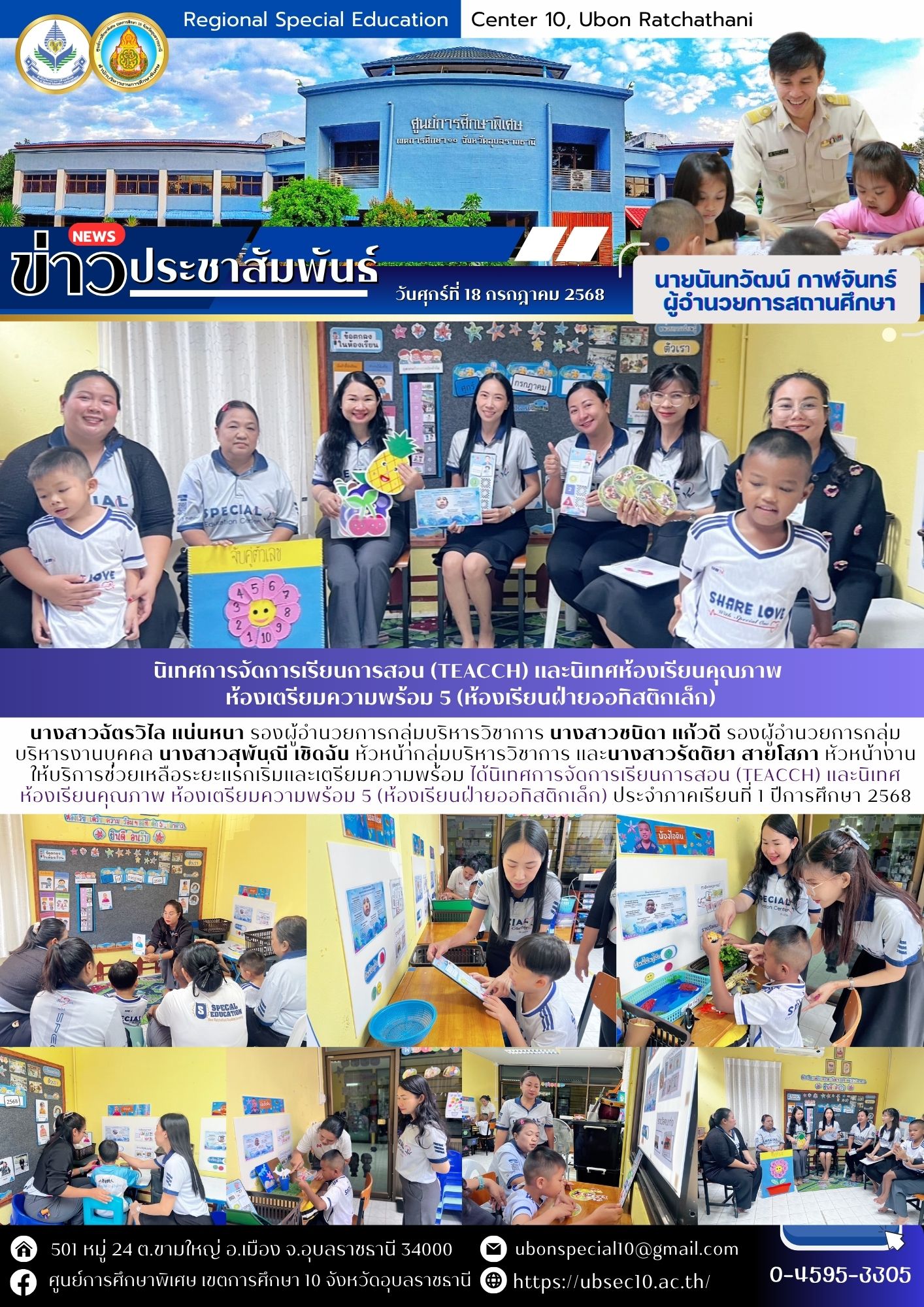 นิเทศการจัดการเรียนการสอน (TEACCH) และนิเทศห้องเรียนคุณภาพ ห้องเตรียมความพร้อม 5 (ห้องเรียนฝ่ายออทิสติกเล็ก) ประจำภาคเรียนที่ 1 ปีการศึกษา 2568By ชนินทร์ ศรีส่อง / 18 กรกฎาคม 2025