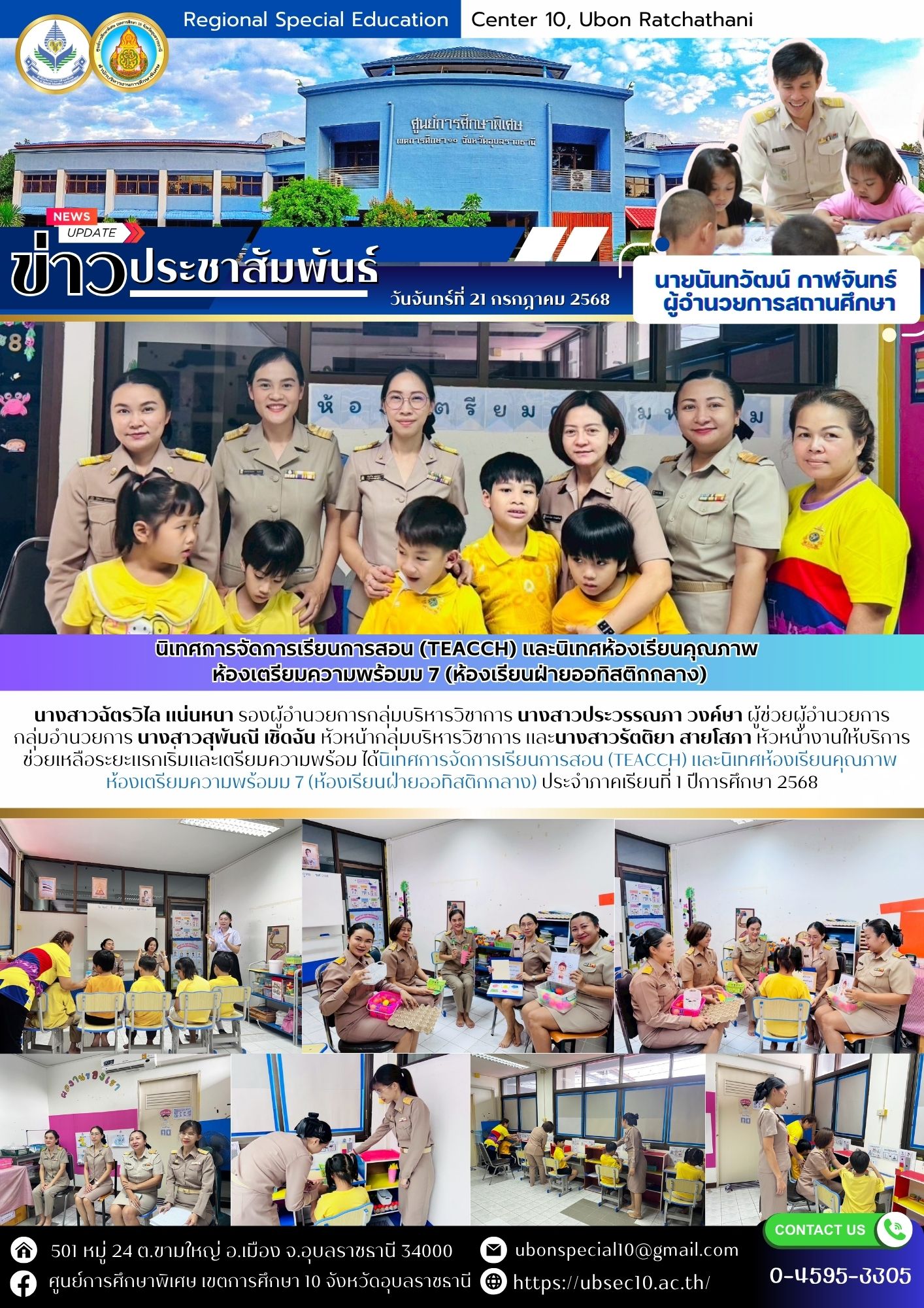 นิเทศการจัดการเรียนการสอน (TEACCH) และนิเทศห้องเรียนคุณภาพ ห้องเตรียมความพร้อมม 7 (ห้องเรียนฝ่ายออทิสติกกลาง) ประจำภาคเรียนที่ 1 ปีการศึกษา 2568By ชนินทร์ ศรีส่อง / 21 กรกฎาคม 2025