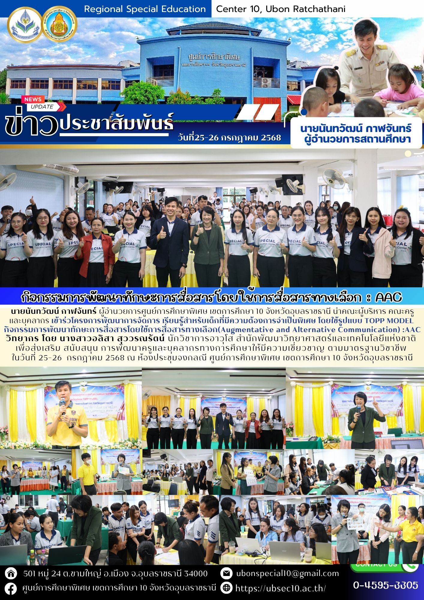 โครงการพัฒนาการจัดการ เรียนรู้สำหรับเด็กที่มีความต้องการจำเป็นพิเศษ โดยใช้รูปแบบ TOPP MODELกิจกรรมการพัฒนาทักษะการสื่อสารโดยใช้การสื่อสารทางเลือก(Augmentative and Alternative Communication) :AACBy ชนินทร์ ศรีส่อง / 26 กรกฎาคม 2025
