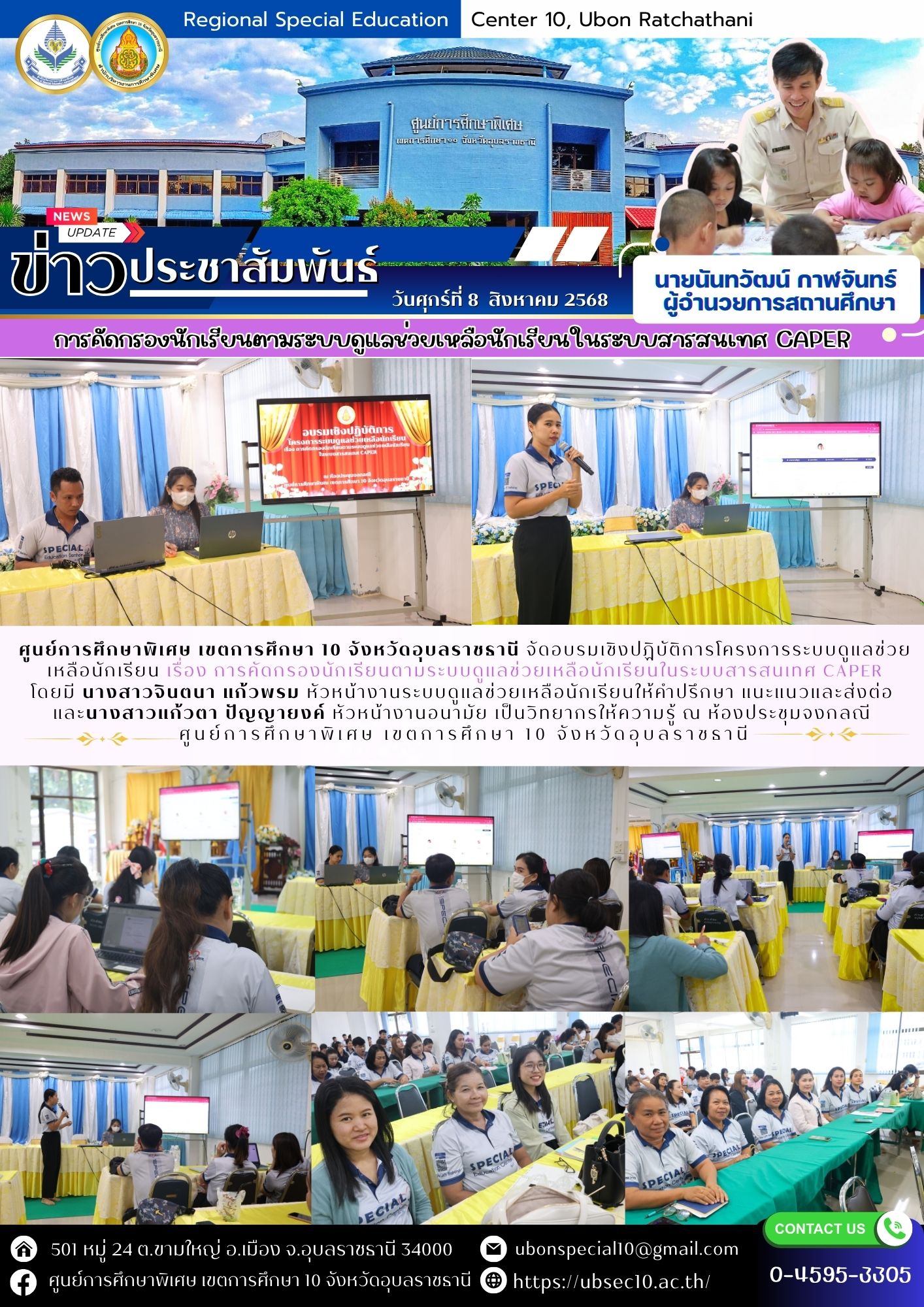 อบรมเชิงปฏิบัติการโครงการระบบดูแลช่วยเหลือนักเรียน เรื่อง การคัดกรองนักเรียนตามระบบดูแลช่วยเหลือนักเรียนในระบบสารสนเทศ CAPERBy ชนินทร์ ศรีส่อง / 8 สิงหาคม 2025