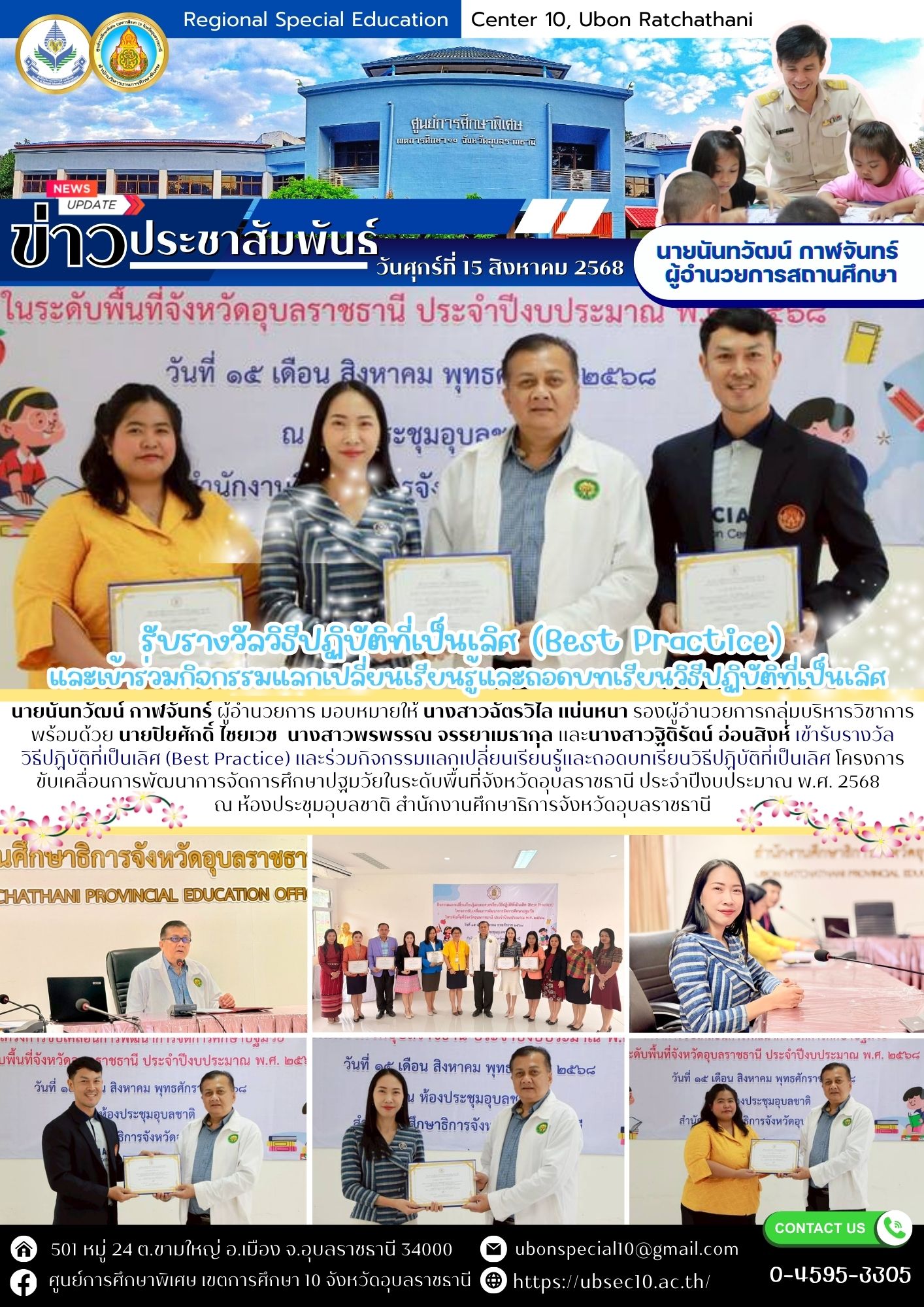 ร่วมกิจกรรมแลกเปลี่ยนเรียนรู้และถอดบทเรียนวิธีปฏิบัติที่เป็นเลิศ (Best Practice) โครงการขับเคลื่อนการพัฒนาการจัดการศึกษาปฐมวัยในระดับพื้นที่จังหวัดอุบลราชธานีBy ชนินทร์ ศรีส่อง / 15 สิงหาคม 2025