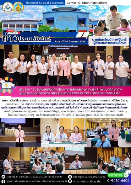 เป็นวิทยากรอบรมเชิงปฏิบัติการโครงการเสริมสร้างความรู้และพัฒนาศักยภาพผู้ปกครองคนพิการทางสติปัญญาในการกระตุ้นพัฒนาการและการเรียนรู้By ชนินทร์ ศรีส่อง / 16 สิงหาคม 2025