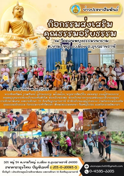 กิจกรรมส่งเสริมคุณธรรมจริยธรรม กิจกรรมการทำวัตรเช้า ฟังพระธรรมเทศนา กัณฑ์อุโบสถ และกิจกรรมจิตอาสาBy ชนินทร์ ศรีส่อง / 28 สิงหาคม 2025