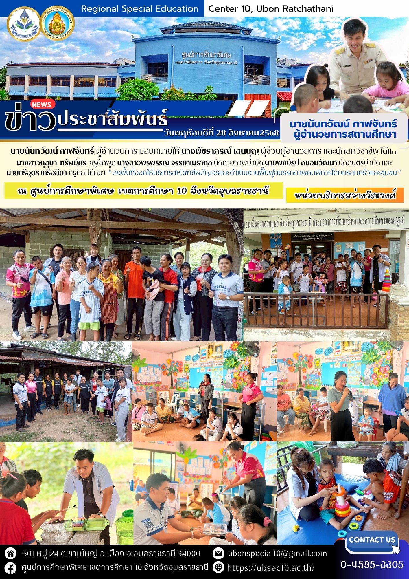 ลงพื้นที่ออกให้บริการสหวิชาชีพสัญจรและดำเนินงานฟื้นฟูสมรรถภาพคนพิการโดยครอบครัวและชุมชน ” ณ ศูนย์การศึกษาพิเศษ เขตการศึกษา 10 จังหวัดอุบลราชธานี หน่วยบริการสว่างวีระวงศ์By ชนินทร์ ศรีส่อง / 28 สิงหาคม 2025