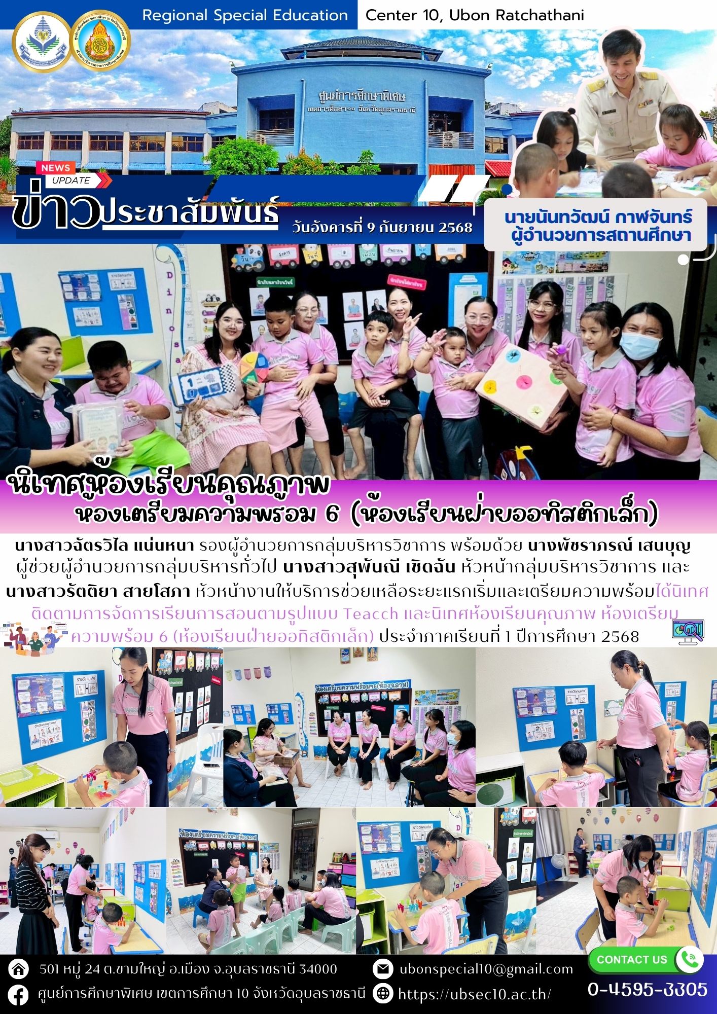 นิเทศ ติดตามการจัดการเรียนการสอนตามรูปแบบ Teacch และนิเทศห้องเรียนคุณภาพ ห้องเตรียมความพร้อม 6 (ห้องเรียนฝ่ายออทิสติกเล็ก) ประจำภาคเรียนที่ 1 ปีการศึกษา 2568By ชนินทร์ ศรีส่อง / 9 กันยายน 2025