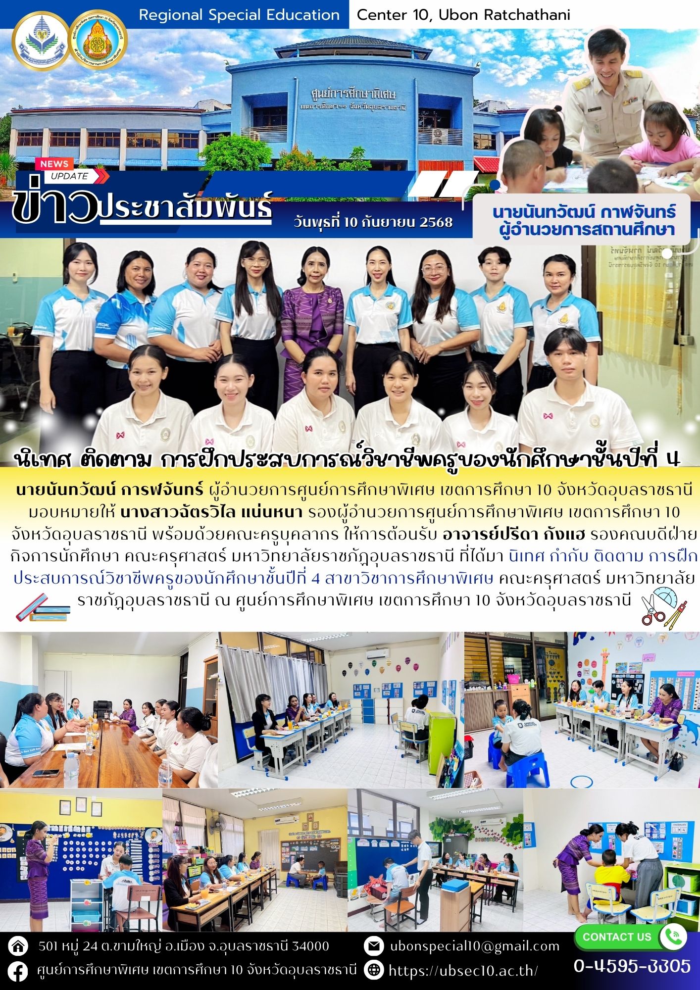 นิเทศ กำกับ ติดตาม การฝึกประสบการณ์วิชาชีพครูของนักศึกษาชั้นปีที่ 4 สาขาวิชาการศึกษาพิเศษ คณะครุศาสตร์ มหาวิทยาลัยราชภัฏอุบลราชธานีBy ชนินทร์ ศรีส่อง / 10 กันยายน 2025
