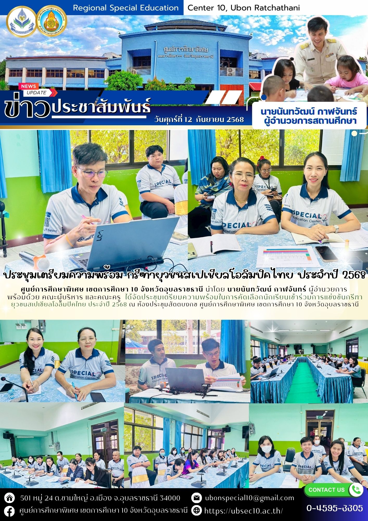 ประชุมเตรียมความพร้อมในการคัดเลือกนักเรียนเข้าร่วมการแข่งขันกรีฑายุวชนสเปเชียลโอลิมปิคไทย ประจำปี 2568By ชนินทร์ ศรีส่อง / 12 กันยายน 2025
