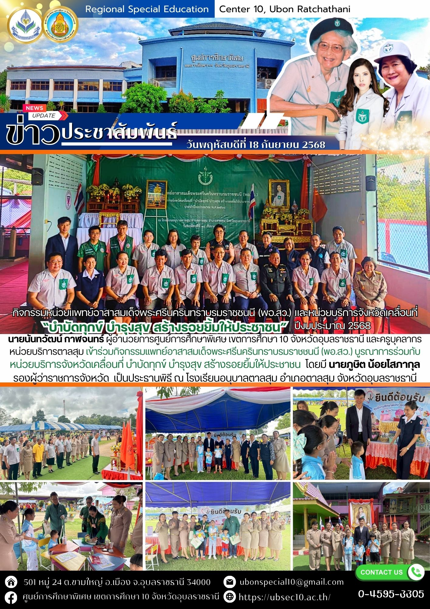 กิจกรรมแพทย์อาสาสมเด็จพระศรีนครินทราบรมราชชนนี (พอ.สว.) บูรณาการร่วมกับหน่วยบริการจังหวัดเคลื่อนที่ บำบัดทุกข์ บำรุงสุข สร้างรอยยิ้มให้ประชาชนBy ชนินทร์ ศรีส่อง / 18 กันยายน 2025
