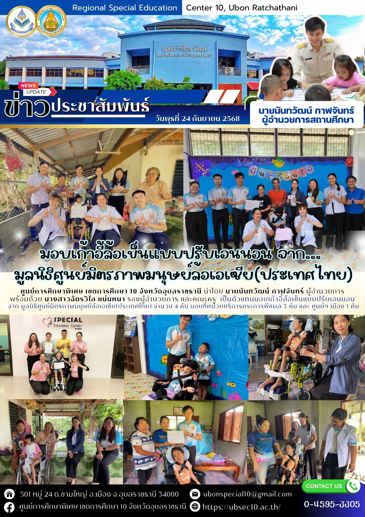 มอบเก้าอี้ล้อเข็นแบบปรับเอนนอนจาก มูลนิธิศูนย์มิตรภาพมนุษย์ล้อเอเซีย(ประเทศไทย)By ชนินทร์ ศรีส่อง / 24 กันยายน 2025