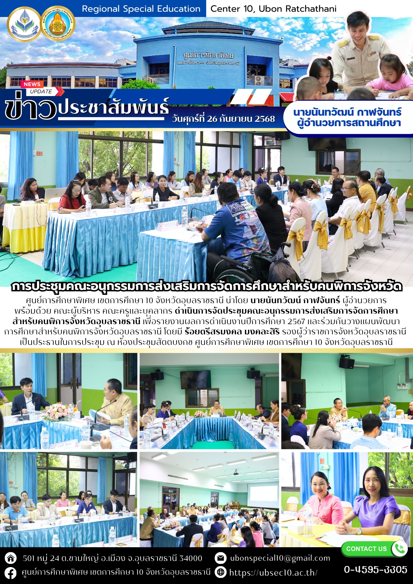 ประชุมคณะอนุกรรมการส่งเสริมการจัดการศึกษาสำหรับคนพิการจังหวัดอุบลราชธานีBy ชนินทร์ ศรีส่อง / 26 กันยายน 2025