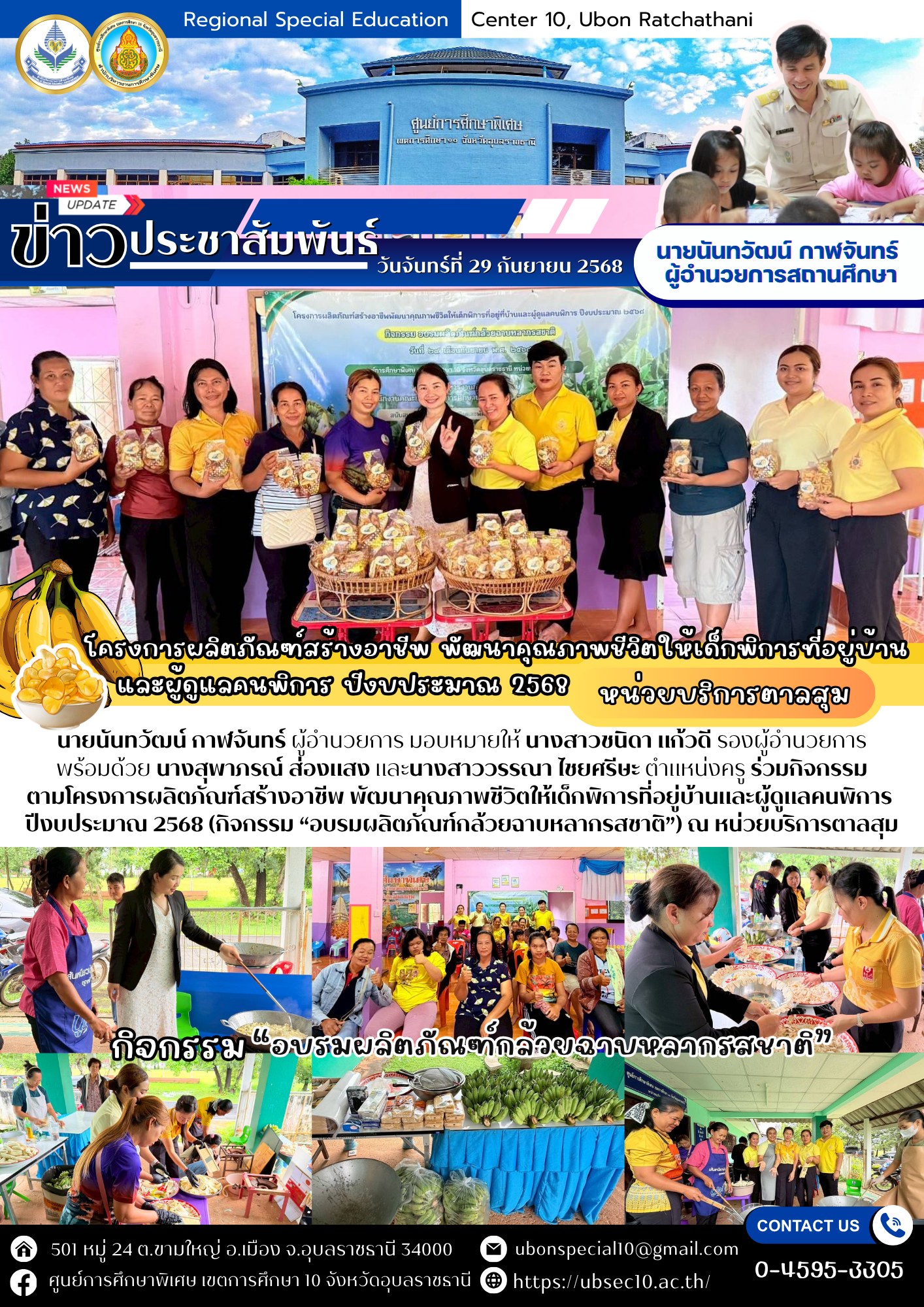 โครงการผลิตภัณฑ์สร้างอาชีพ พัฒนาคุณภาพชีวิตให้เด็กพิการที่อยู่บ้านและผู้ดูแลคนพิการ ปีงบประมาณ 2568 (กิจกรรม “อบรมผลิตภัณฑ์กล้วยฉาบหลากรสชาติ”) ณ หน่วยบริการตาลสุมBy ชนินทร์ ศรีส่อง / 29 กันยายน 2025
