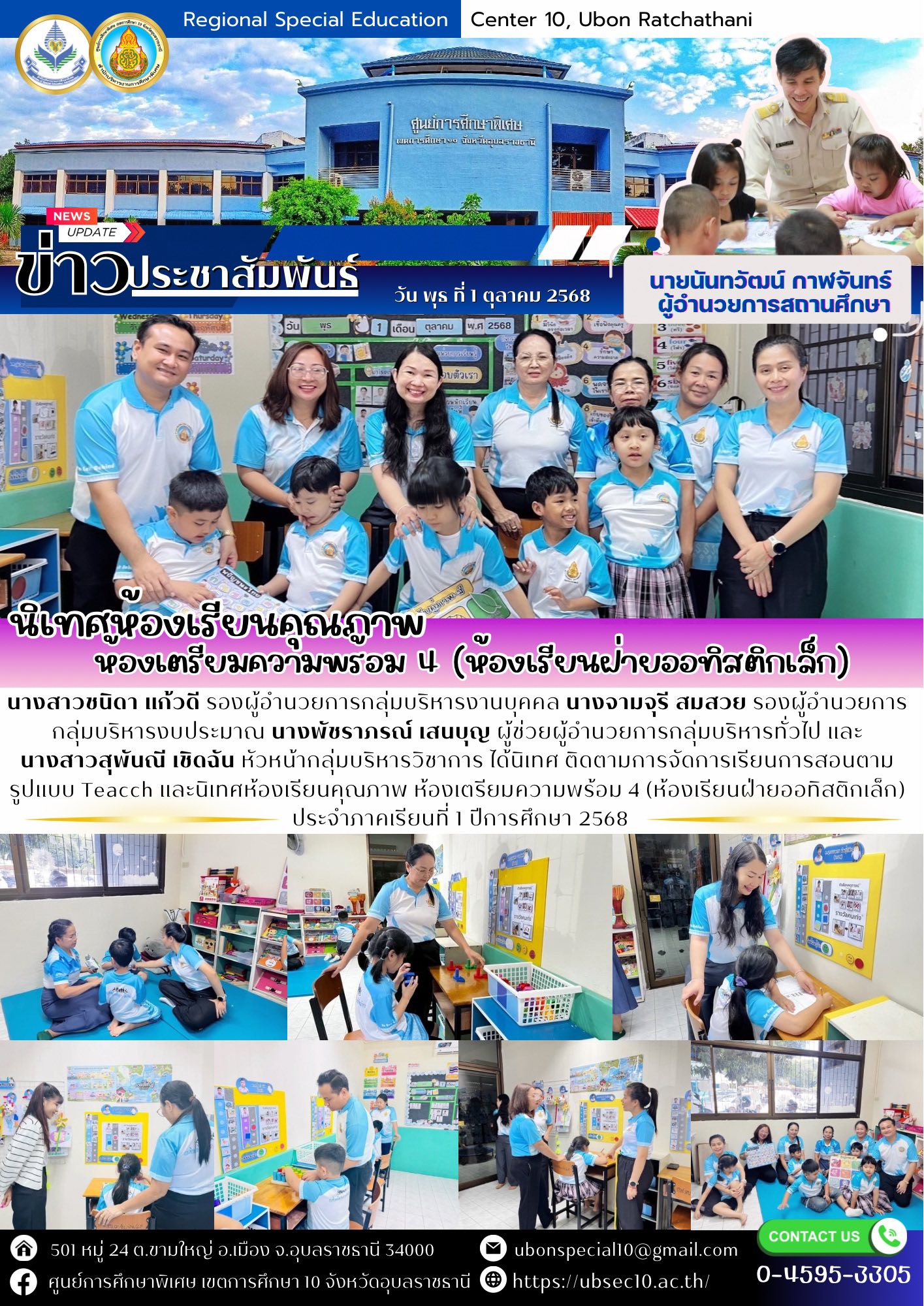 นิเทศ ติดตามการจัดการเรียนการสอนตามรูปแบบ Teacch และนิเทศห้องเรียนคุณภาพ ห้องเตรียมความพร้อม 4 (ห้องเรียนฝ่าย ออทิสติกเล็ก) ประจำภาคเรียนที่ 1 ปีการศึกษา 2568By ชนินทร์ ศรีส่อง / 1 ตุลาคม 2025