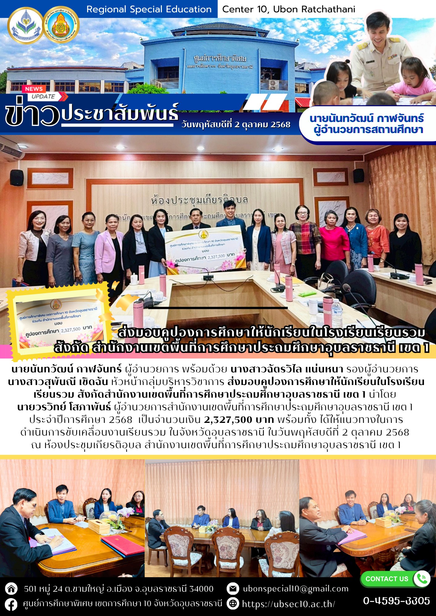 ส่งมอบคูปองการศึกษาให้นักเรียนในโรงเรียนเรียนรวม สังกัดสำนักงานเขตพื้นที่การศึกษาประถมศึกษาอุบลราชธานี เขต 1By ชนินทร์ ศรีส่อง / 2 ตุลาคม 2025