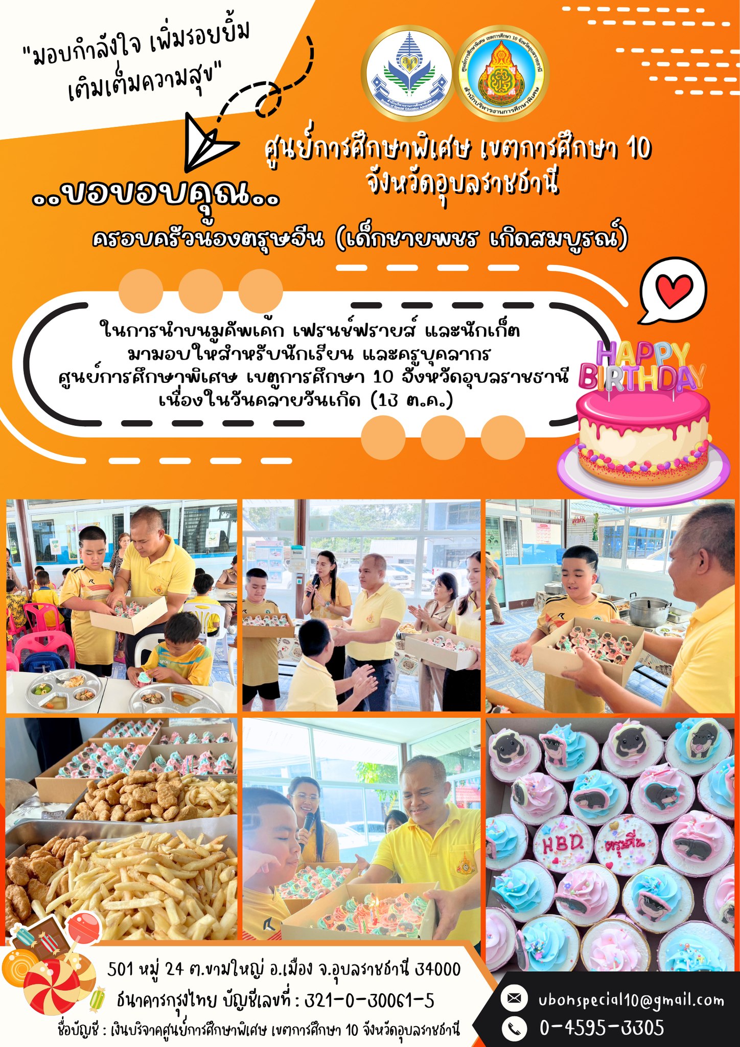ขอขอบคุณ ครอบครัวน้องตรุษจีน (เด็กชายพชร เกิดสมบูรณ์) ที่ให้การสนับสนุนน้องๆคนพิเศษBy ชนินทร์ ศรีส่อง / 20 ตุลาคม 2025