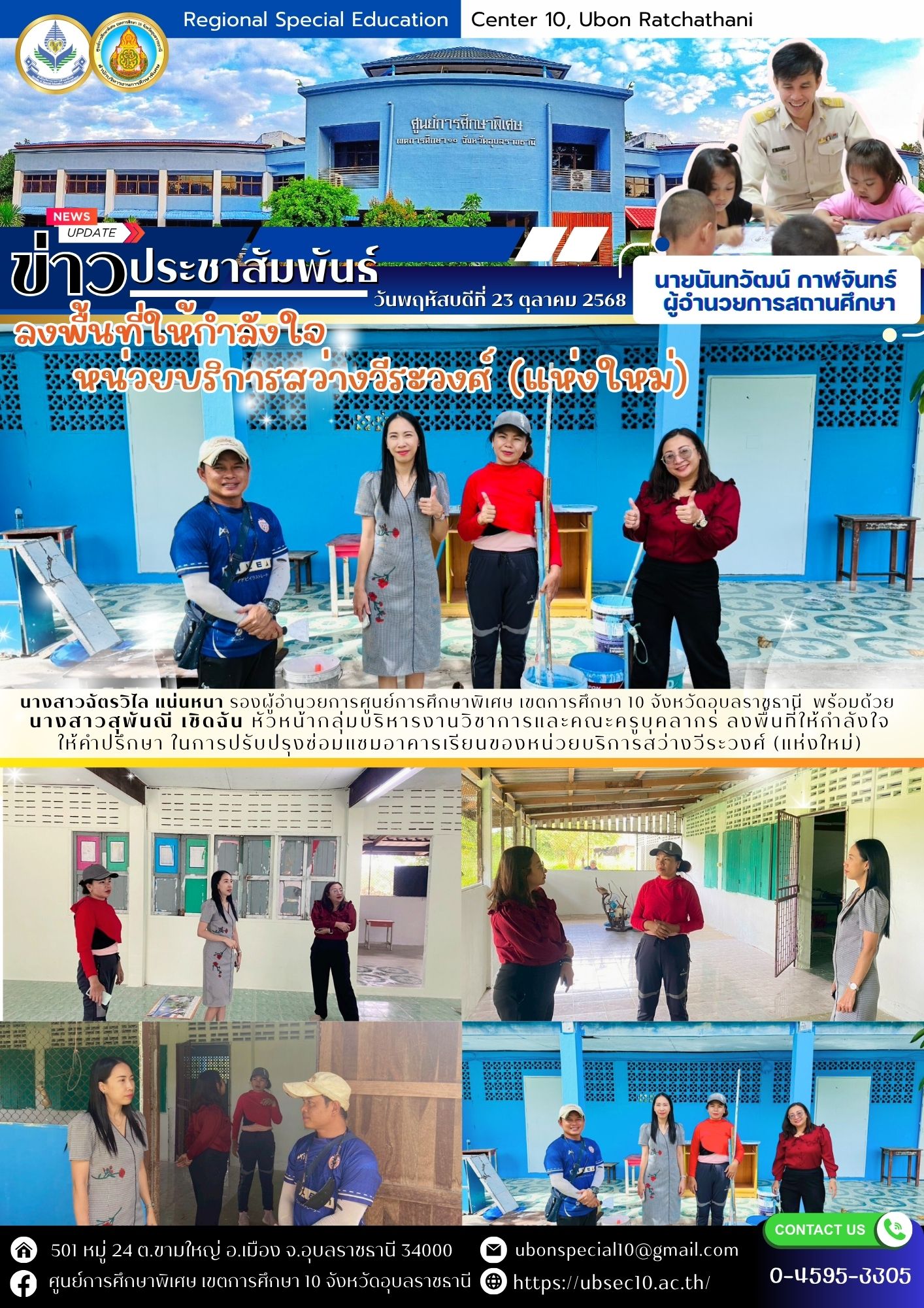 ลงพื้นที่ให้กำลังใจ ให้คำปรึกษา ในการปรับปรุงซ่อมแซมอาคารเรียนของหน่วยบริการสว่างวีระวงศ์ (แห่งใหม่)By ชนินทร์ ศรีส่อง / 23 ตุลาคม 2025