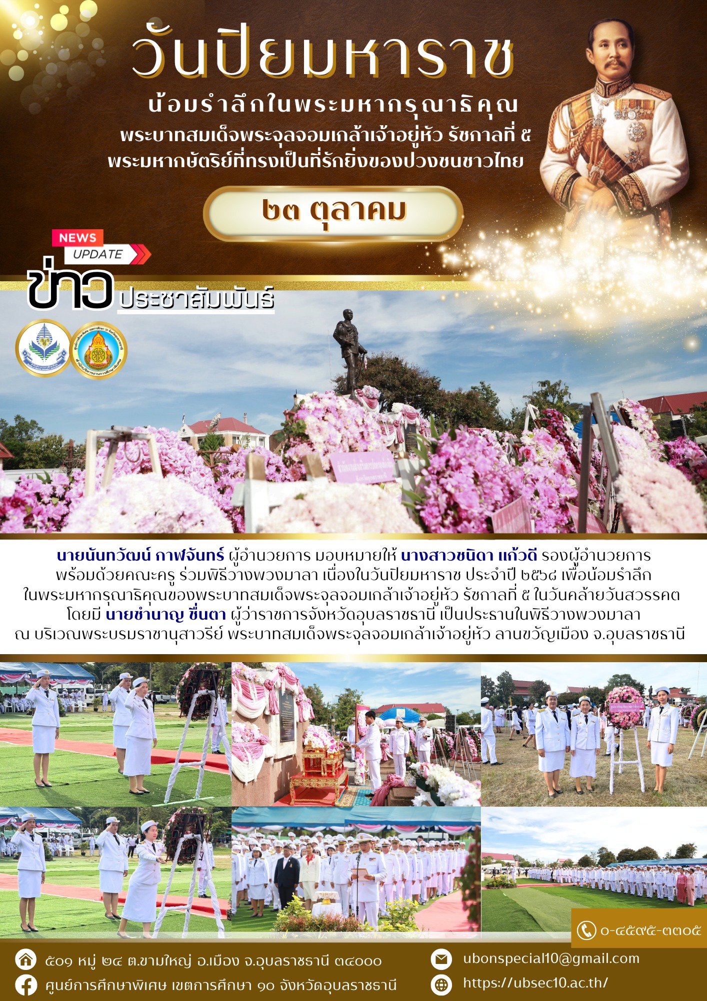 พิธีวางพวงมาลา เนื่องในวันปิยมหาราช ประจำปี 2568 เพื่อน้อมรำลึกในพระมหากรุณาธิคุณของพระบาทสมเด็จพระจุลจอมเกล้าเจ้าอยู่หัว รัชกาลที่ 5 ในวันคล้ายวันสวรรคตBy ชนินทร์ ศรีส่อง / 23 ตุลาคม 2025