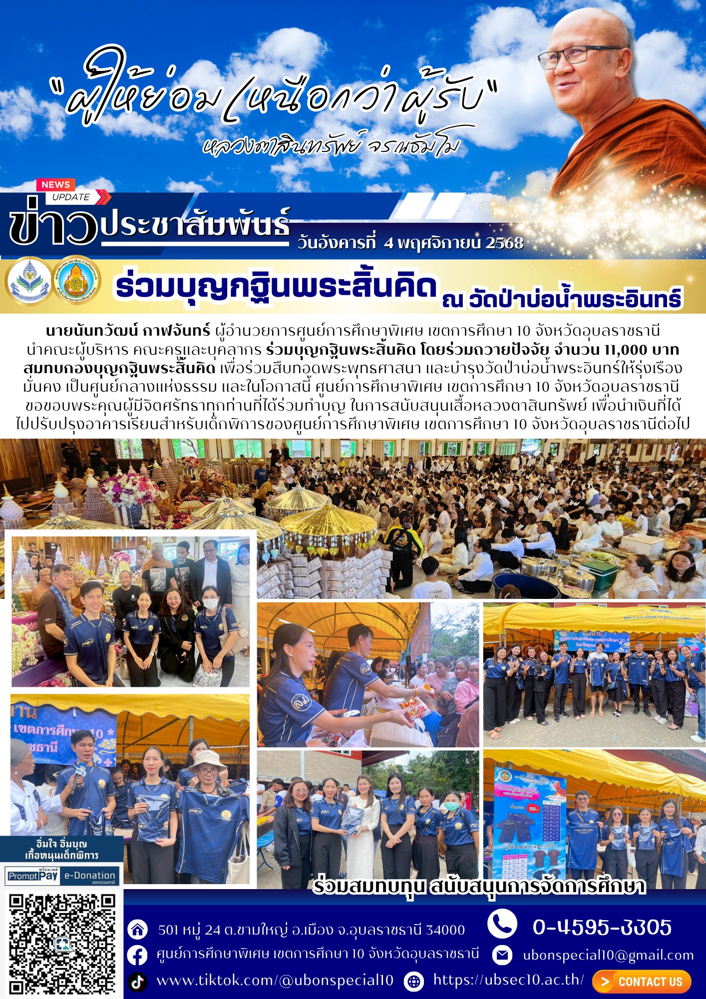 ร่วมบุญกฐินพระสิ้นคิด โดยร่วมถวายปัจจัย จำนวน 11,000 บาท สมทบกองบุญกฐินพระสิ้นคิดBy ชนินทร์ ศรีส่อง / 4 พฤศจิกายน 2025