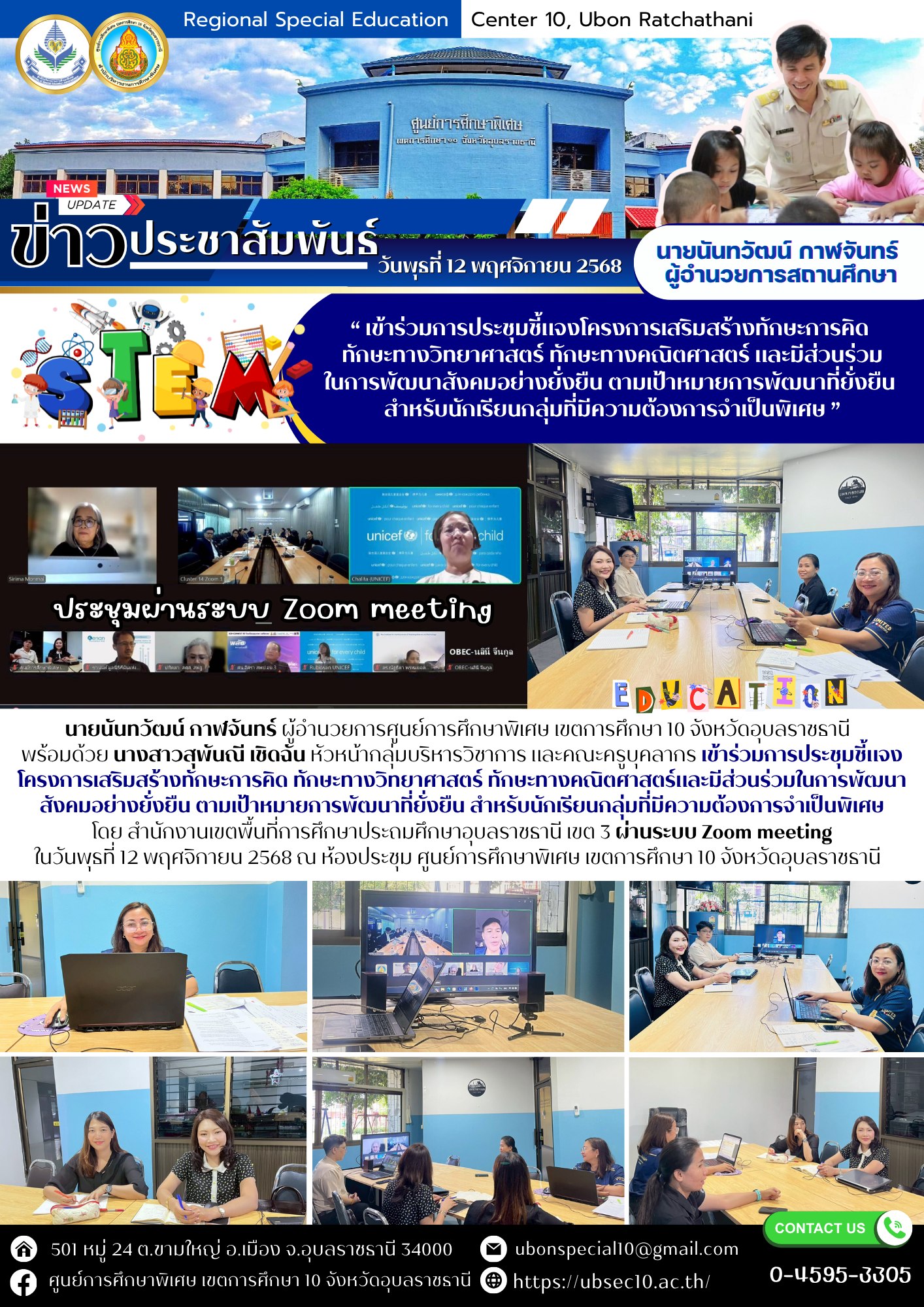 ประชุมชี้แจงโครงการเสริมสร้างทักษะการคิด ทักษะทางวิทยาศาสตร์ ทักษะทางคณิตศาสตร์และมีส่วนร่วมในการพัฒนาสังคมอย่างยั่งยืน ตามเป้าหมายการพัฒนาที่ยั่งยืน สำหรับนักเรียนกลุ่มที่มีความต้องการจำเป็นพิเศษBy ชนินทร์ ศรีส่อง / 12 พฤศจิกายน 2025
