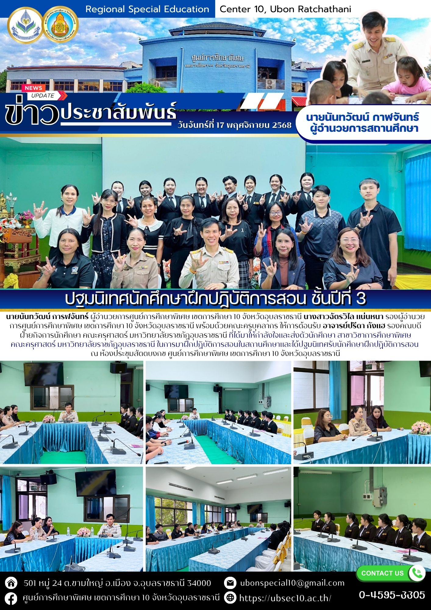 ปฐมนิเทศรับนักศึกษาคณะครุศาสตร์ มหาวิทยาลัยราชภัฏอุบลราชธานีฝึกปฏิบัติการสอนBy ชนินทร์ ศรีส่อง / 17 พฤศจิกายน 2025