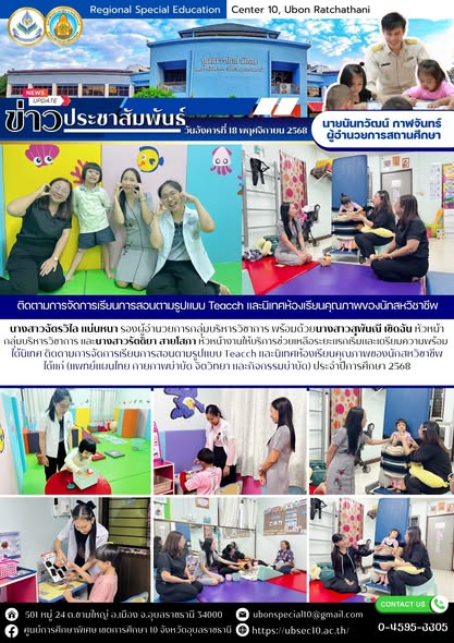 นิเทศ ติดตามการจัดการเรียนการสอนตามรูปแบบ Teacch และนิเทศห้องเรียนคุณภาพของนักสหวิชาชีพ ได้แก่ (แพทย์แผนไทย กายภาพบำบัด จิตวิทยา และกิจกรรมบำบัด) ประจำปีการศึกษา 2568By ชนินทร์ ศรีส่อง / 18 พฤศจิกายน 2025