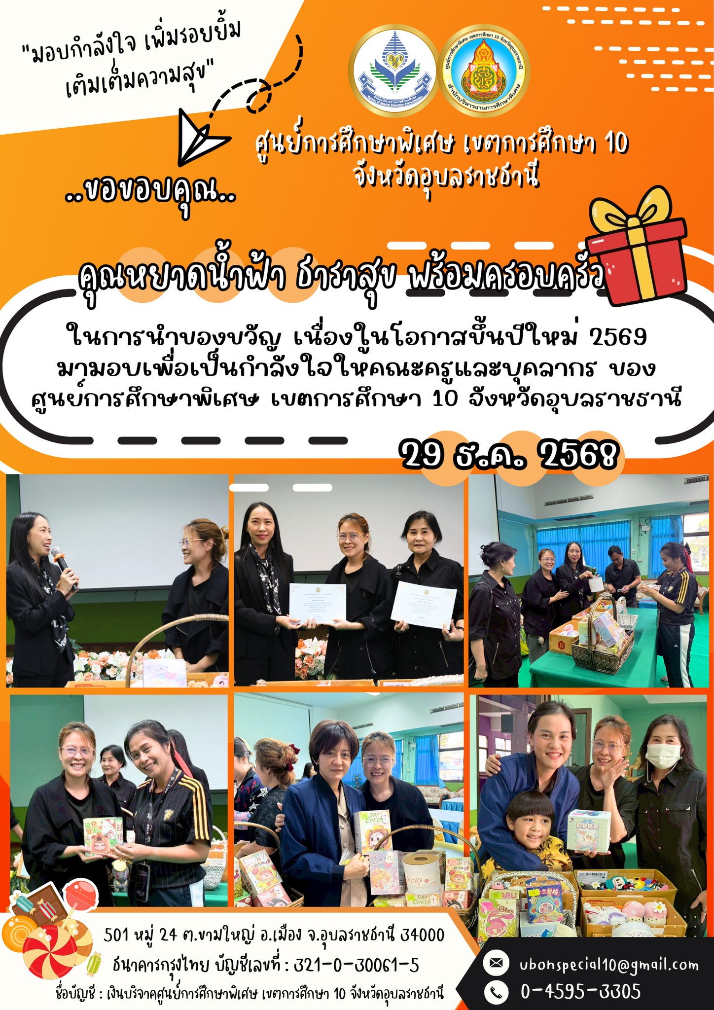 ขอขอบคุณ “คุณหยาดน้ำฟ้า ธาราสุข พร้อมครอบครัว” ในการนำของขวัญให้กำลังใจให้คณะครูและบุคลากรBy ชนินทร์ ศรีส่อง / 29 ธันวาคม 2025