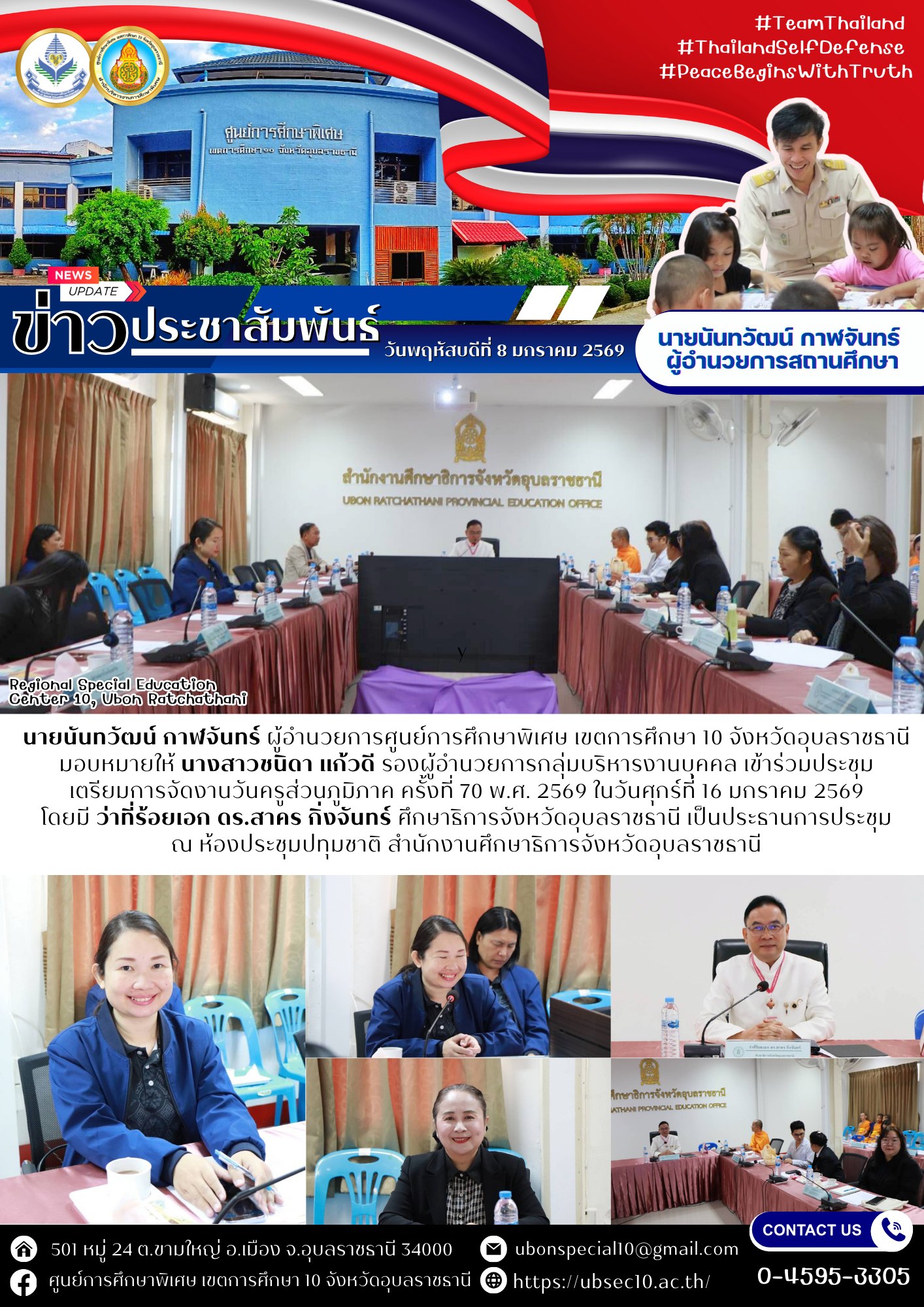 เข้าร่วมประชุมเตรียมการจัดงานวันครูส่วนภูมิภาค ครั้งที่ 70 พ.ศ. 2569By ชนินทร์ ศรีส่อง / 8 มกราคม 2026